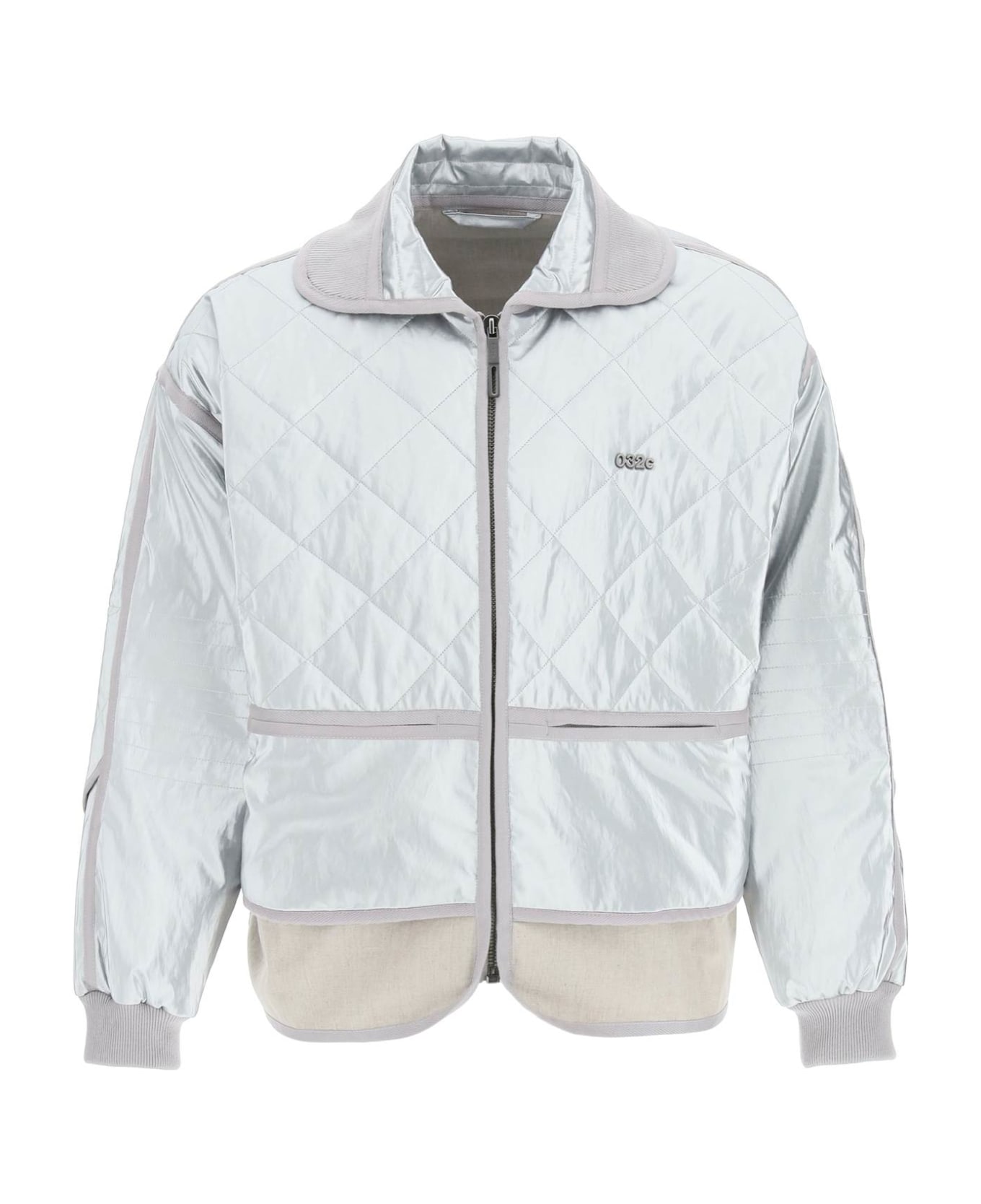 032c bomber jacket in water-repellent laminated linen blend. Quilted and slightly padded. Full-length zip closure, two external pockets and one internal pocket. Reinforced elbows, ribbed collar and cuffs. Metal logo application at front. Slightly oversized fit with boxy cut. The model is 187 cm tall and wears a size L.