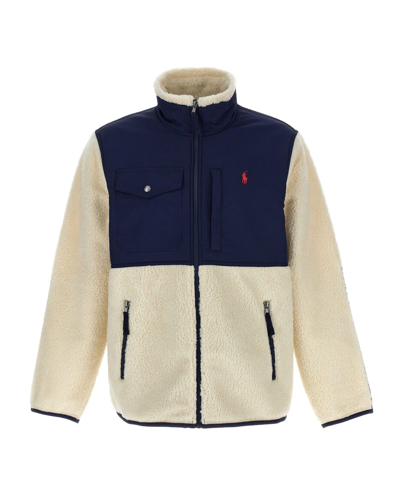 Fleece with technical fabric inserts, zip closure, high collar, logo embroidery on the chest.