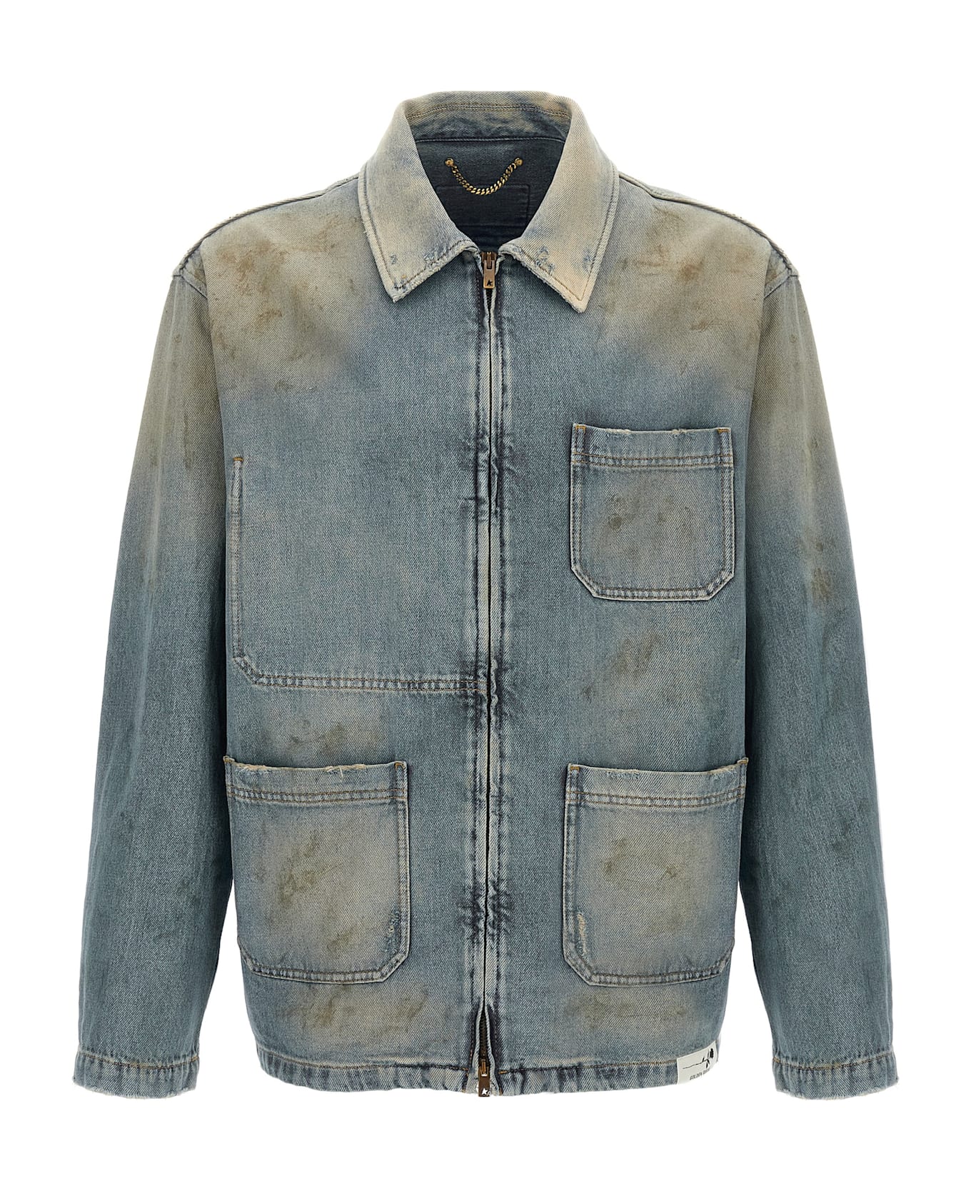 'Mackenzie' 'Worker' denim jacket in cotton denim with shirt collar, front patch pockets, metal zip,