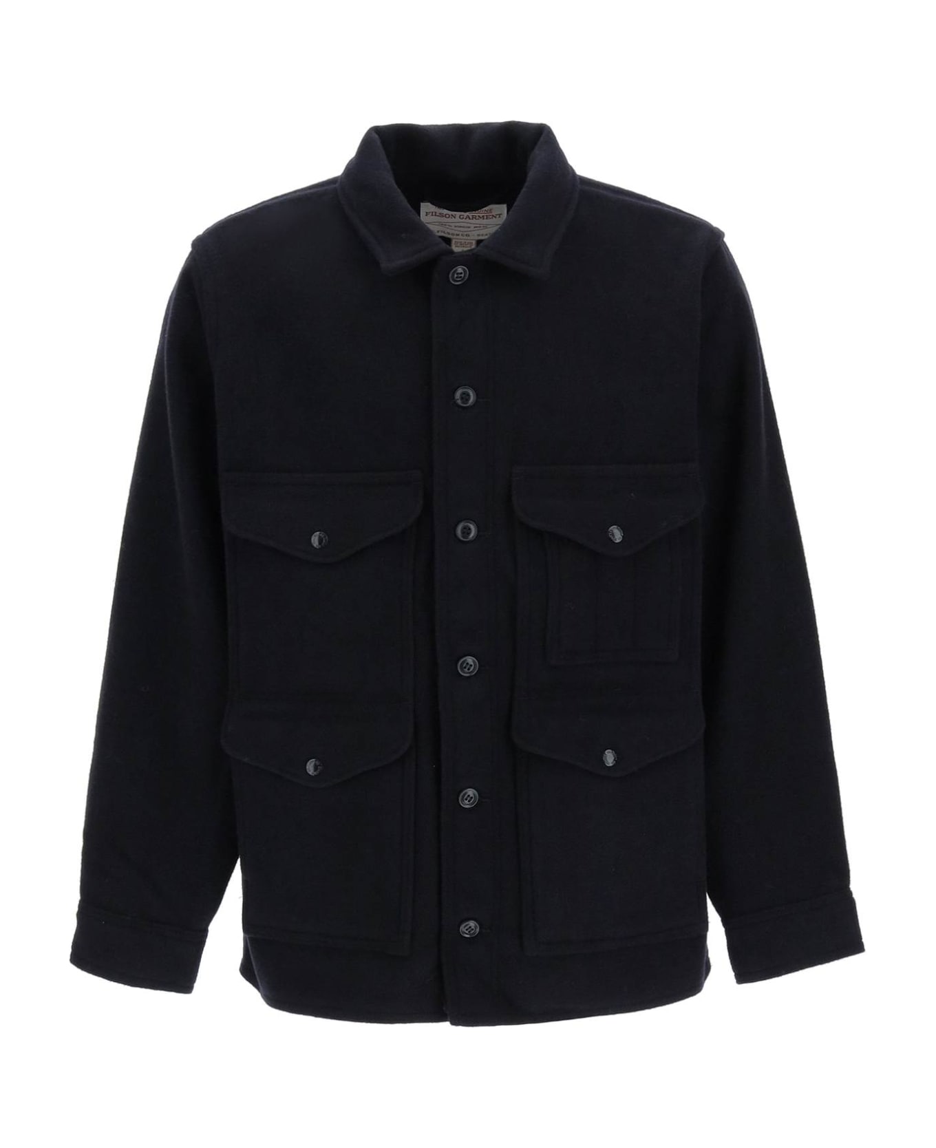 Cruiser multipocket jacket by Filson crafted in breathable and highly water-repellent Mackinaw virgin wool. Shirt design with front buttoning, pointed collar with small lapel and adjustable cuffs with buttons. If features four pockets with flap and press-stud, two pockets with side entry and a full-length pocket on the back with side opening with press-stud flap. Slightly oversized fit. The model is 187 cm tall and wears a size L.