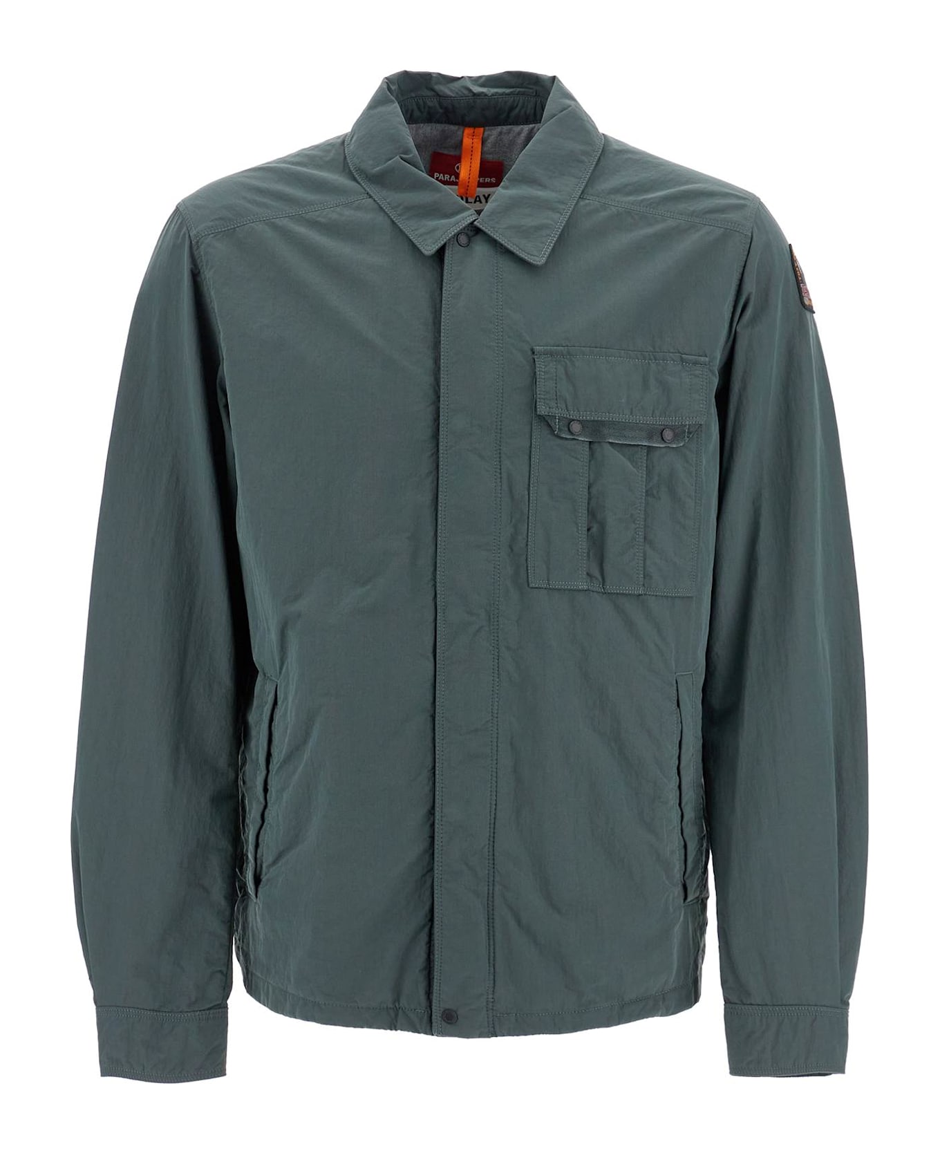 The Parajumpers Overshirt is made of nylon and cotton poplin with a handcrafted finish. Lined with cotton twill, it offers a regular fit with a straight cut and a shirt design featuring a collar, adjustable cuffs, zip and snap closure, and a flap pocket on the chest. The logo patch is located on the sleeve. The model is 182 cm tall and wears size L.