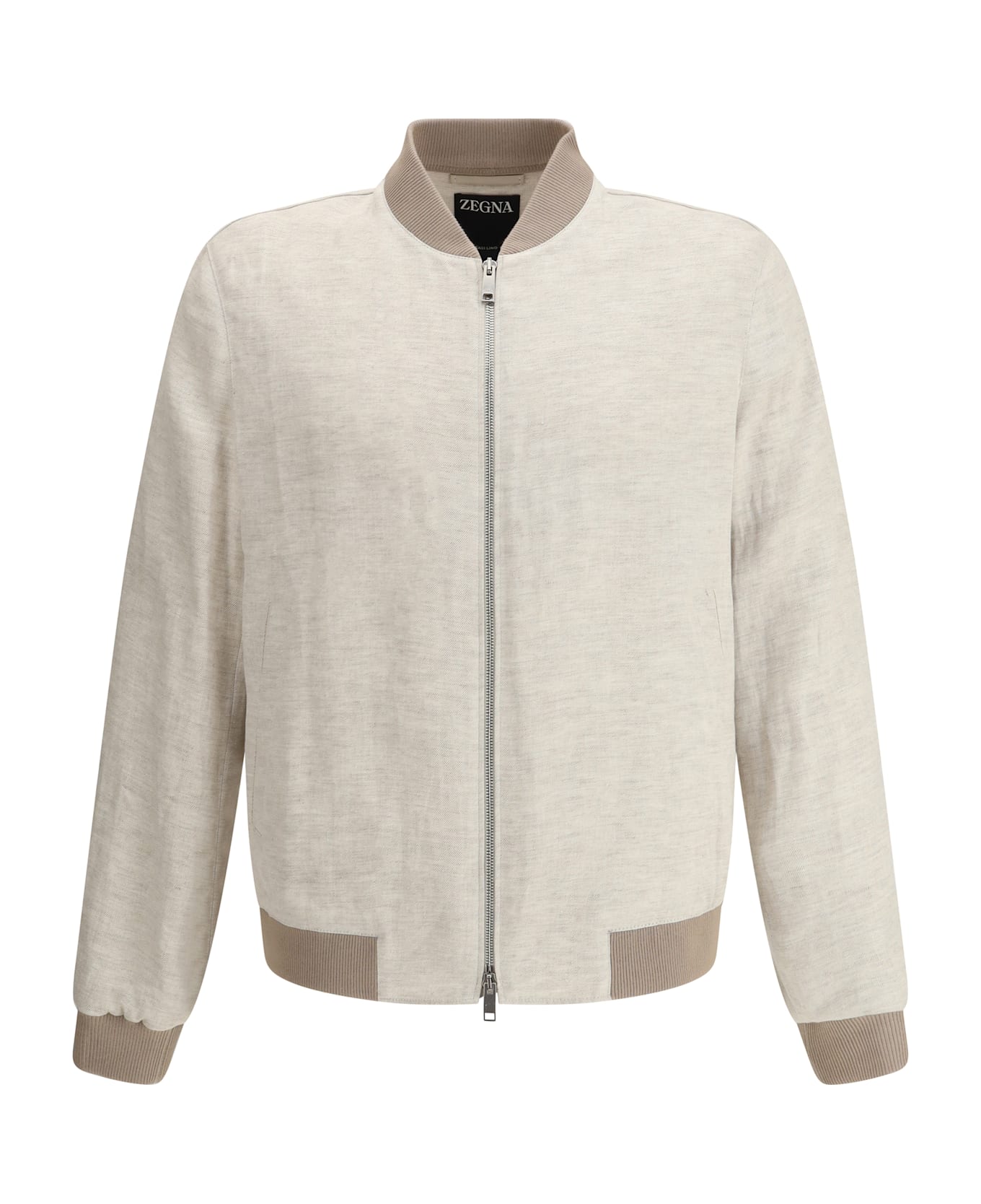 The zegna oasi linen jacket is an elegant and refined piece, perfect for a sophisticated yet casual look. the ribbed collar adds a touch of detail, while the ribbed cuffs and ribbed hem ensure a comfortable and well-structured fit. the two side welt pockets offer practicality without sacrificing style. the two-way front zip closure allows for easy adjustment of the jacket opening, while the melange pattern gives an interesting and contemporary visual effect.
