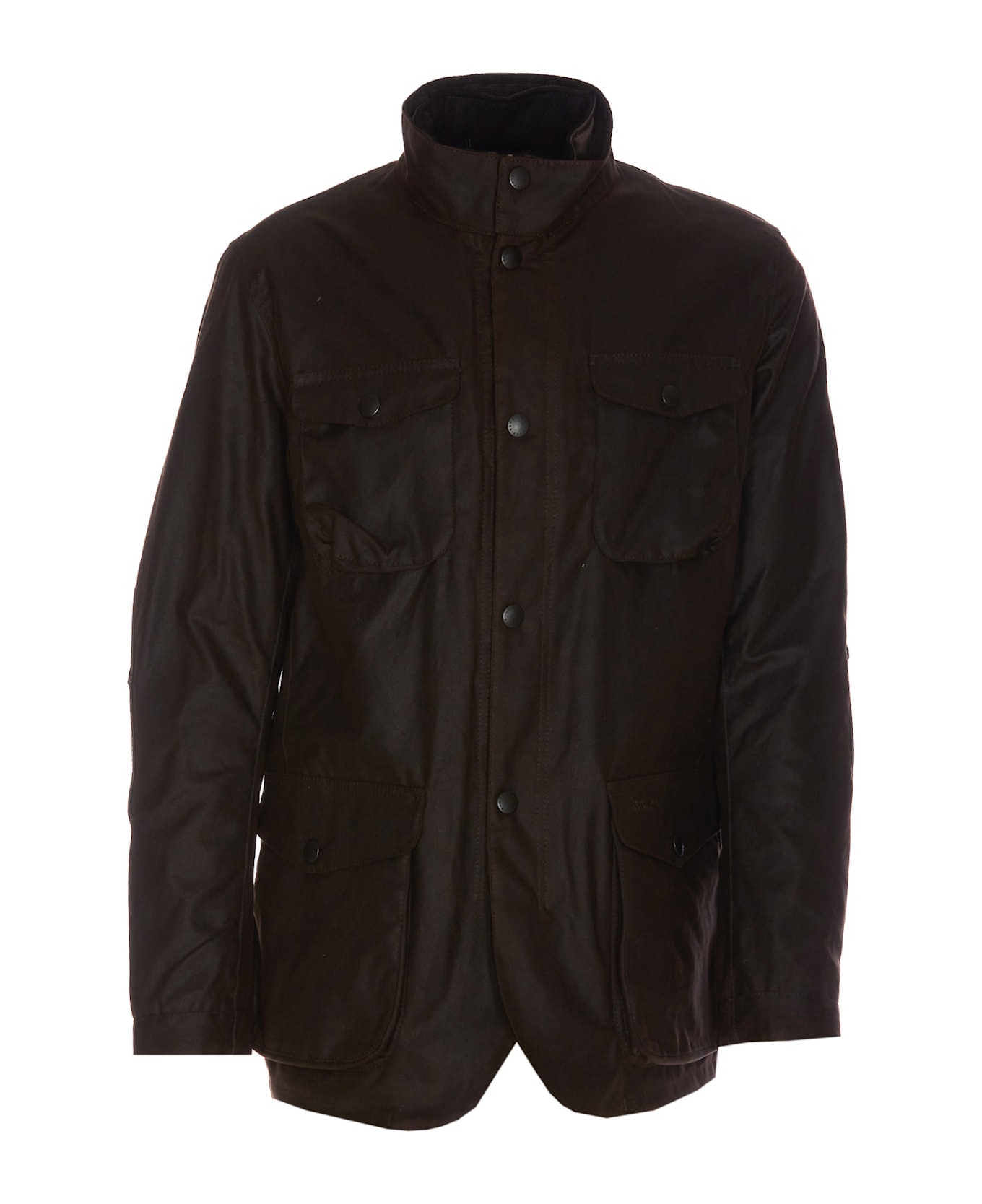 Barbour rustic Ogston wax jacket with frontal zip and buttons closure, pockets on the front, embroidered logo on the front, long sleeves, regular collar, high neck