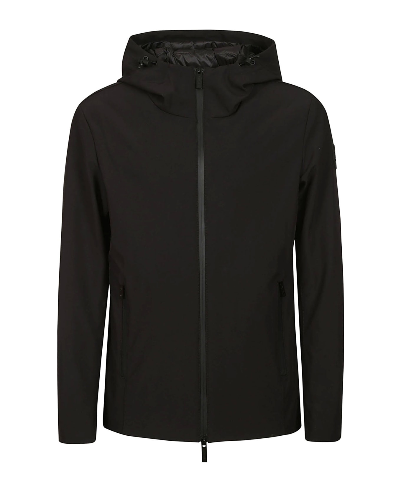 The WOOLRICH jacket, with a slim line, is made of waterproof and windproof Tech Softshell fabric and is padded with lightweight duck down to provide extra warmth. It closes with a double-direction waterproof zip and comes with an adjustable hood, flap pockets with waterproof zips, and ergonomic sleeves for freedom of movement. It also features a taped inner pocket to keep important items such as keys or documents safe from moisture, and a drawstring at the bottom to adjust the fit.