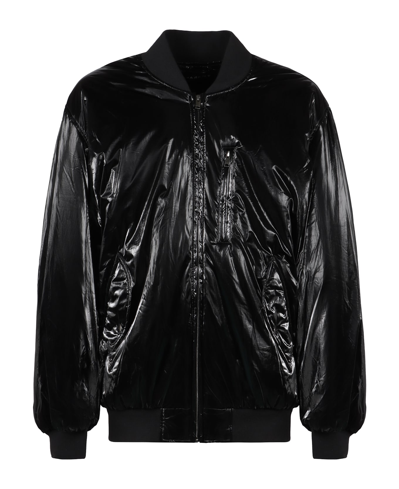 Made from recycled materials shiny effect item zippered front pocket ribbed knit edges 100% polyamide Composition: 100% % Polyamide