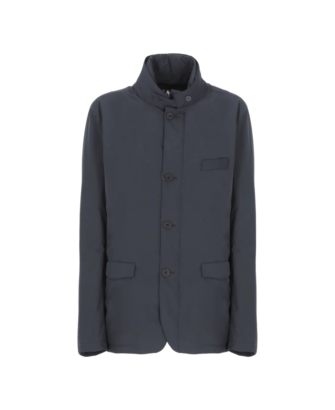 Herno padded jacket in a sophisticated dark blue shade, crafted from polyester with Pro-Meteo technology. Goose down insulation ensures excellent warmth. Features two side pockets with snap buttons, and ribbed cuffs. Regular fit. Perfect for winter with style and comfort.
