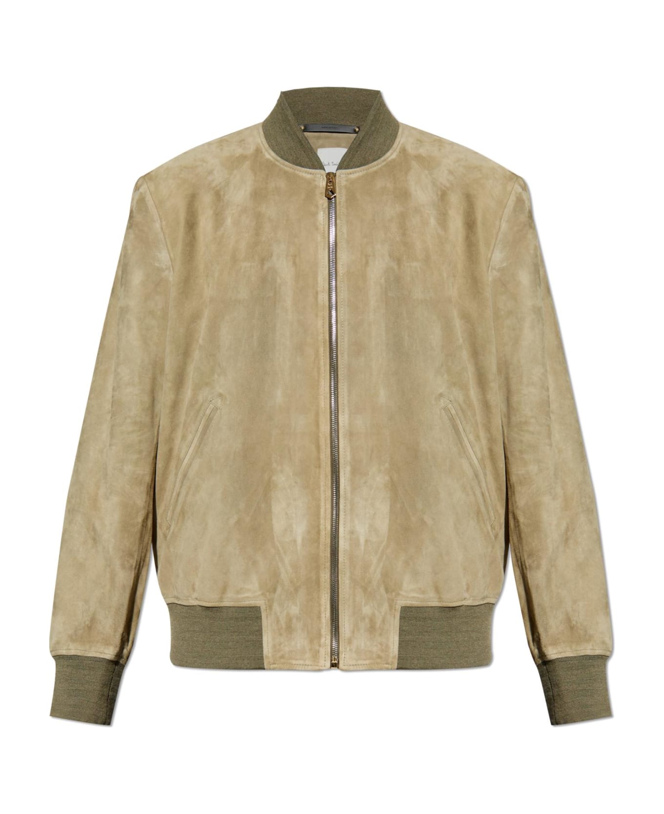 Introducing the exclusive beige bomber jacket by the esteemed designer Paul Smith. This luxurious outerwear piece is crafted from sumptuous suede, providing a refined matte texture that exudes sophistication. The jacket features a classic bomber silhouette with a slightly relaxed fit, complemented by ribbed, elasticated cuffs, collar, and hem in an elegant olive green. The contrasting elements add structure and depth to the design. A metal zipper closure enhances the jackets sleek look while ensuring durability. Subtly integrated side pockets offer practicality without compromising the jackets streamlined appearance. The soft inner lining, crafted from viscose, promises exceptional comfort for the wearer. Though not visible, the lining is thoughtfully designed to ensure a luxurious feel. Styled on a model with a dark turtleneck and wide-leg trousers, this versatile bomber jacket effortlessly transitions from casual to more formal settings, making it a perfect addition to any discerning wardrobe. Why Choose This Product? Exquisite suede material for a premium look and feel Contrasting ribbed details for added sophistication Durable metal zipper for longevity Subtle side pockets for functionality Soft viscose lining for ultimate comfort Designed by renowned fashion designer Paul Smith Composition: Inner Layer: