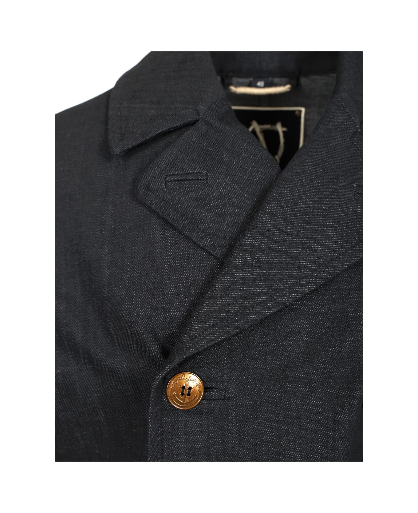 Short peacoat in Japanese denim with welt pockets and metal buttons