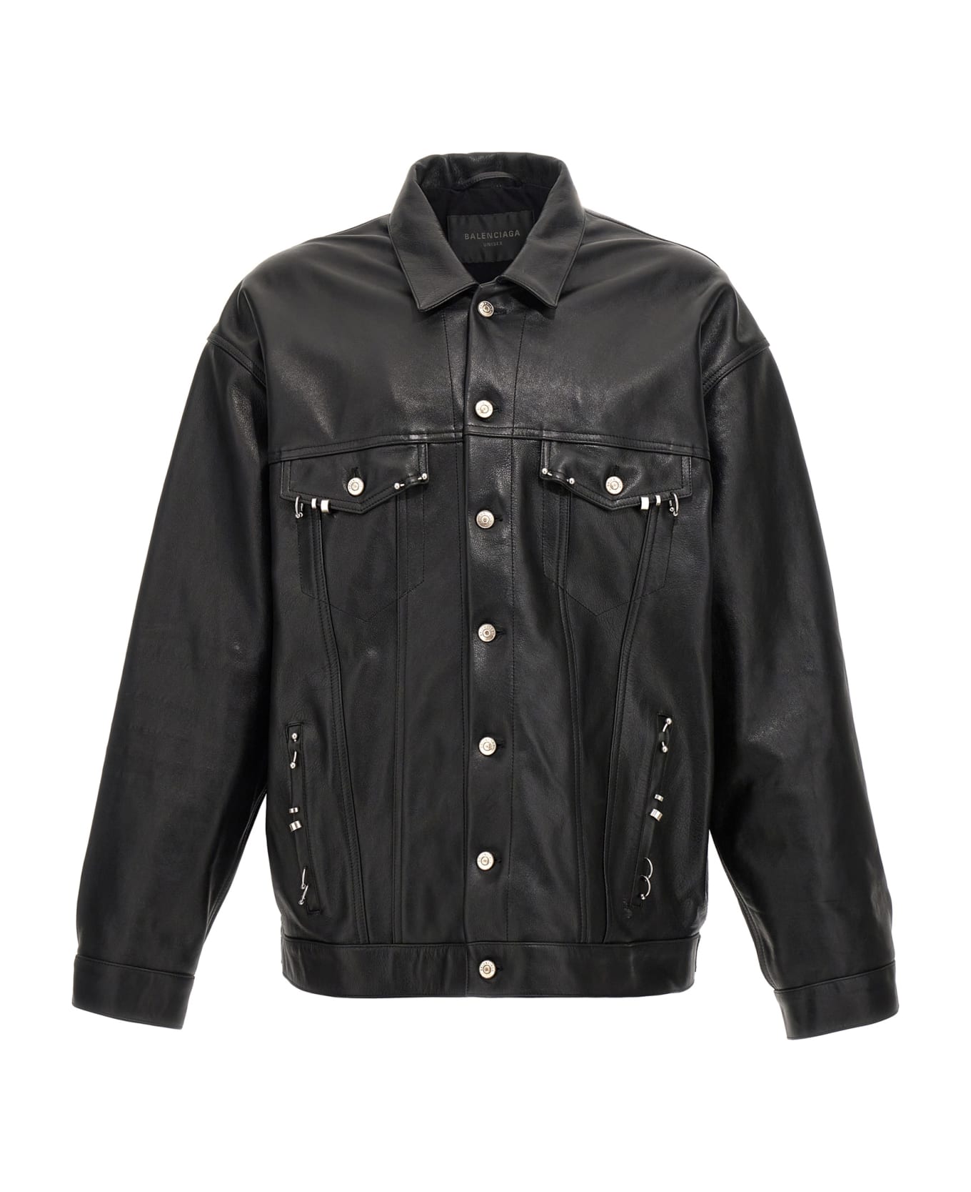 Leather jacket with all-over piercing application, button closure, pockets, long cuffed sleeves. Composition: 100% cow leather (Bos Taurus)