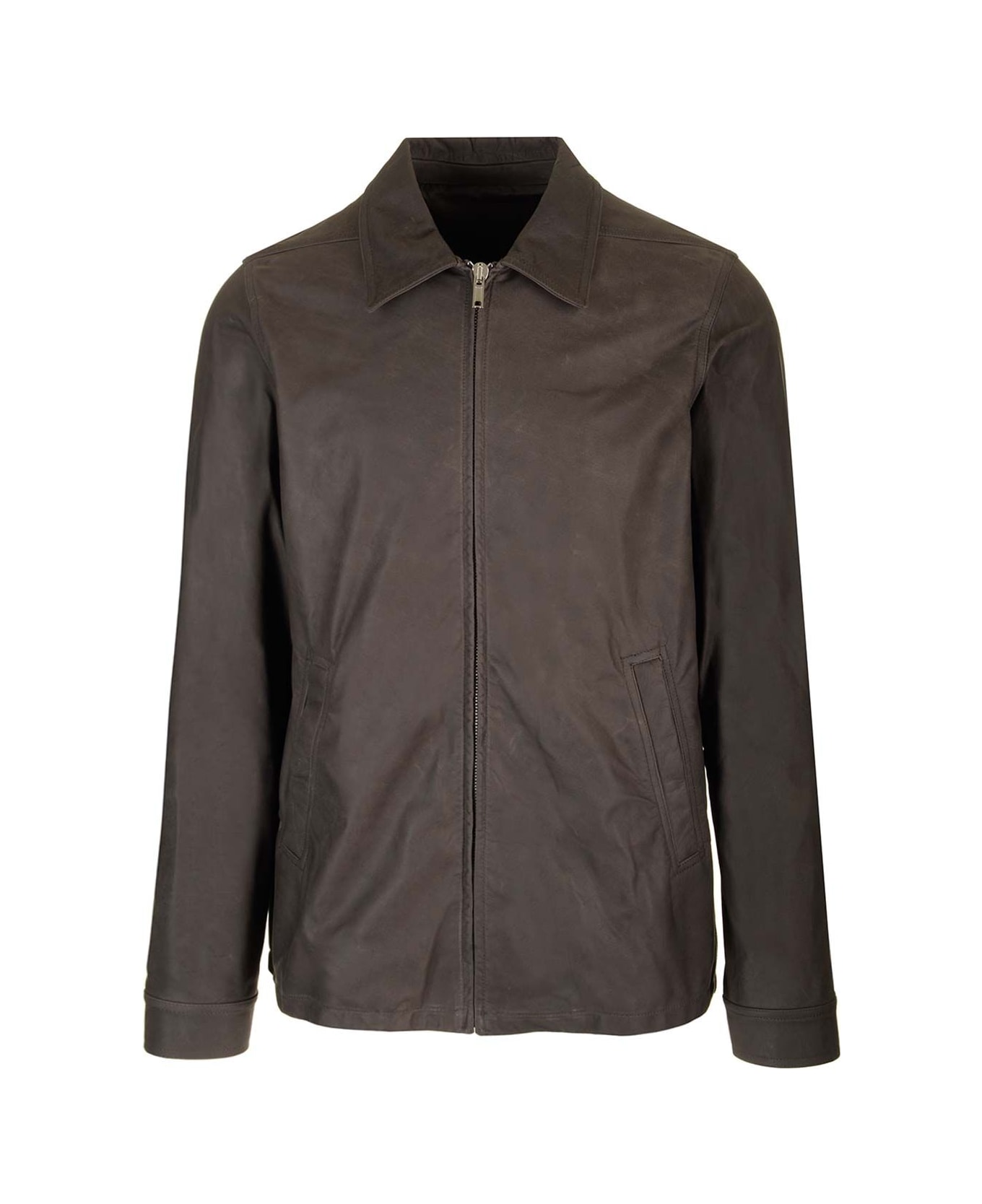 "Porterville" leather jacket with shirt collar, front zip fastening and welt pockets