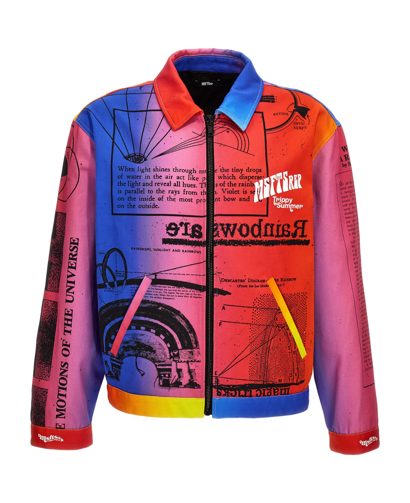 Cotton canvas jacket with all-over print, shirt collar, zip closure, pockets, long cuffed sleeves, and a logo print at the front and back. Composition: 100% cotton