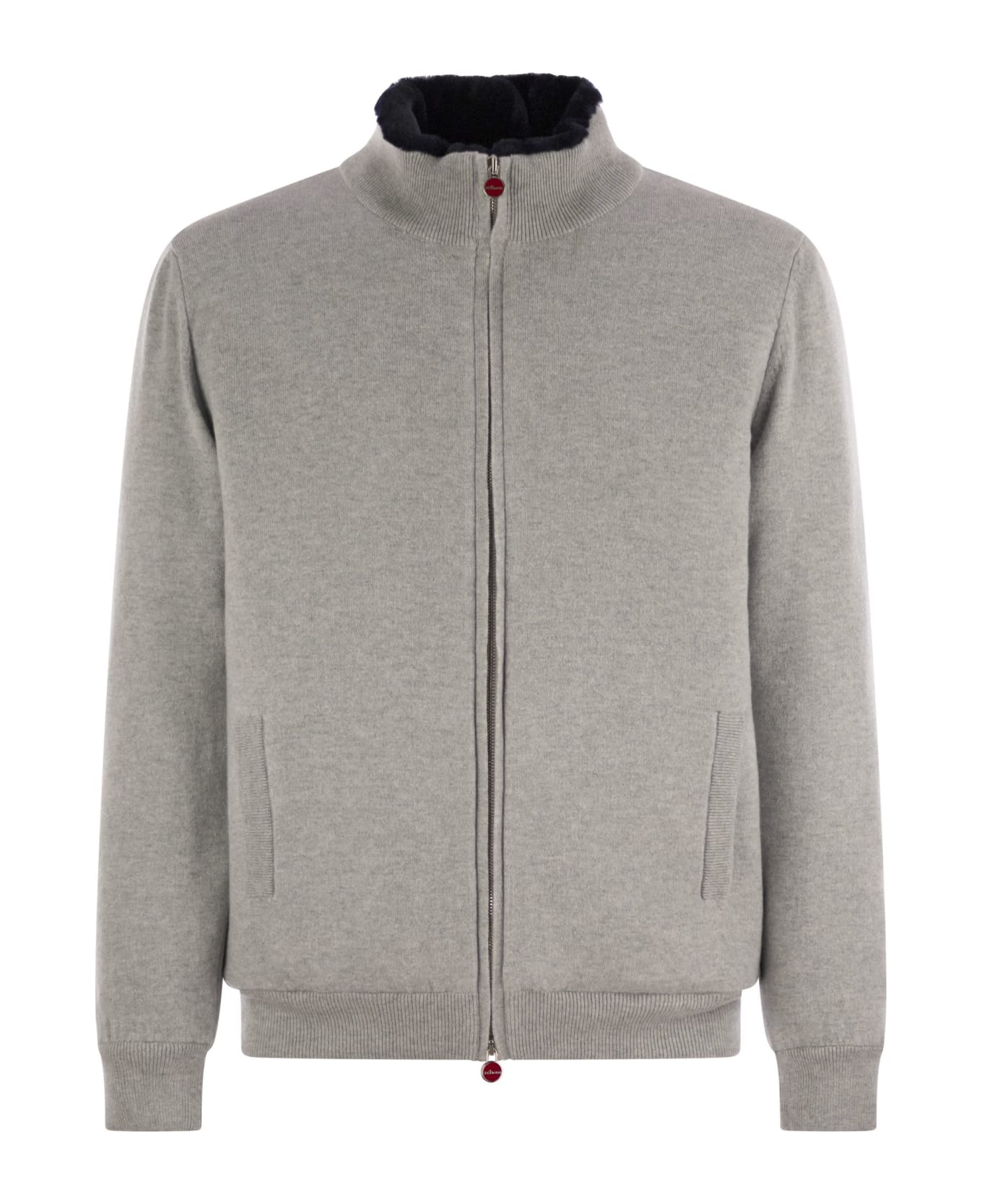 Plush cut jacket with zip made of soft pure cashmere knitwear. Kiton knitwear is the result of loyalty to tradition and the search for excellence. Each garment is worked through an accurate process that includes twenty-two steps, half of which are strictly handmade. The sweater undergoes a soft treatment that gives it an extraordinary softness. This Kiton jumper is perfect to wear during free time: it gives your look a casual and sophisticated style. - Zip closure - Side pockets - Ribbed collar and edges DESIGNER ID: UMK14891007 000 Composition: 100% Cashmere Inside: Sheepskin