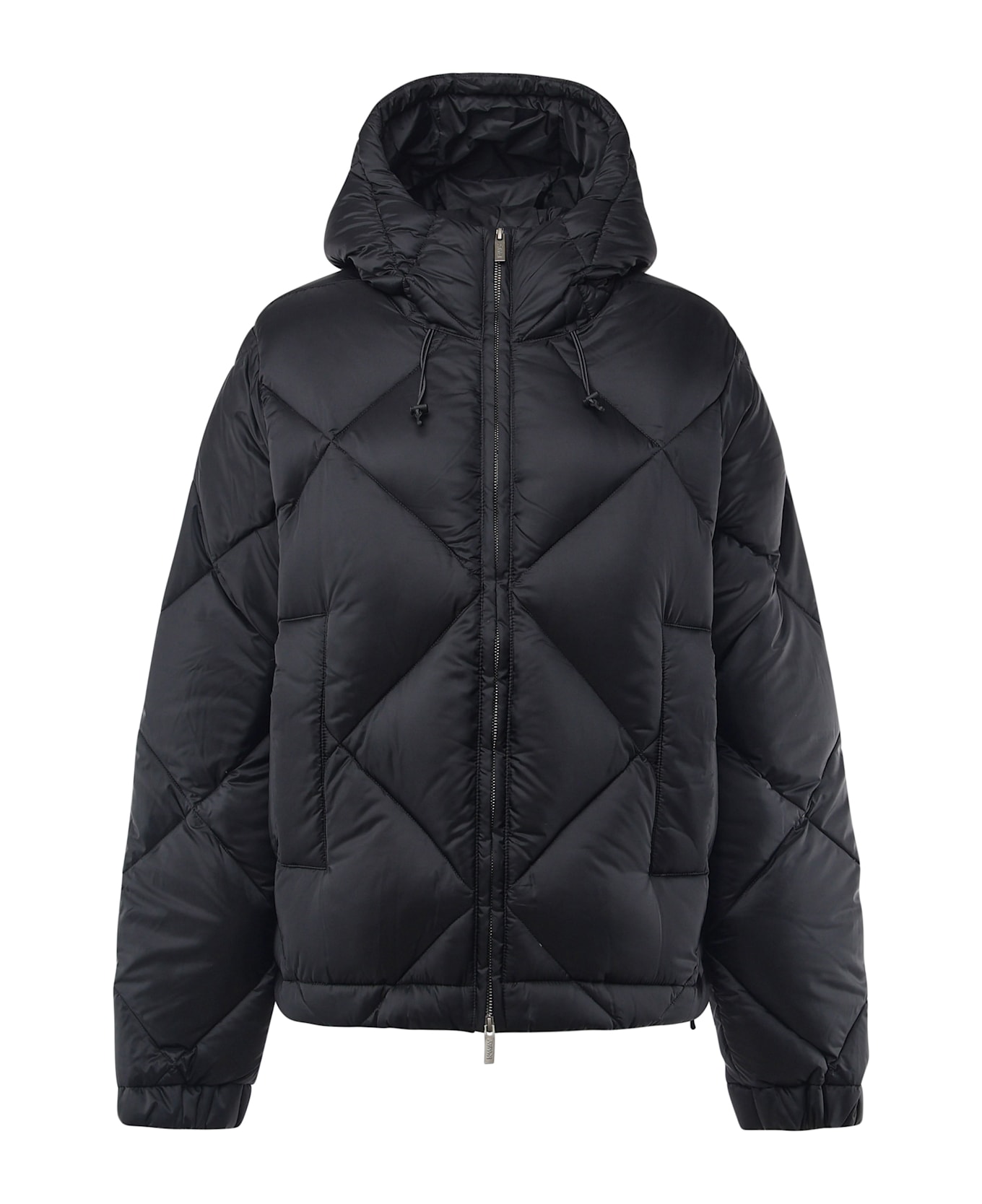 -Silky nylon fabric -Molina down filling -Rhombic quilting -High degree of warmth -Adjustable hood -Zip closure -Wrists with elastic -Two pockets with snap buttons -Adjustable waist -Regular fit -Logo on bottom sleeve -Color: Black