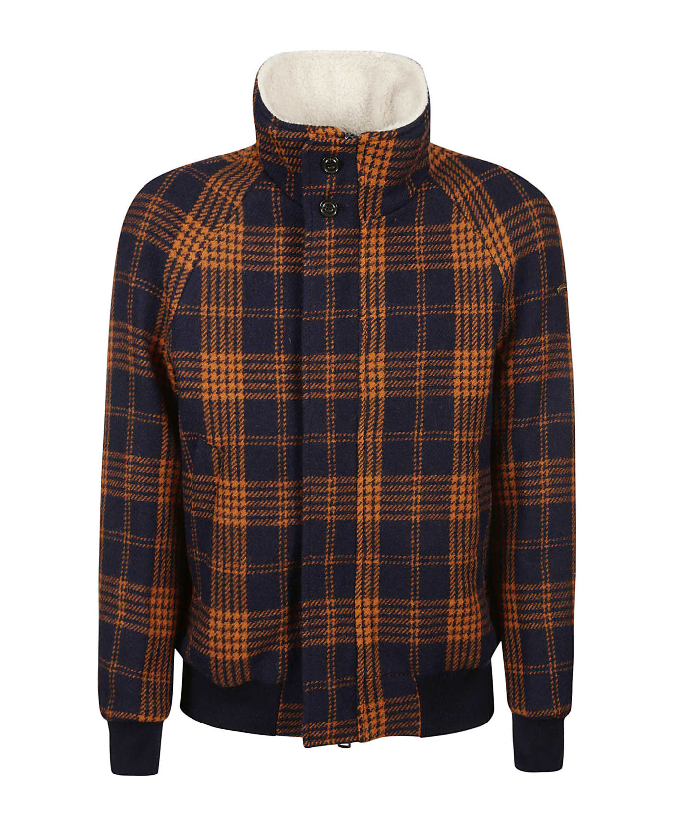 Regular Fit PAUL & SHARK wool bomber with check pattern and houndstooth, double slider zip closure, and snap buttons, ribbed cuffs and hem, zip pockets. Internal phone pocket