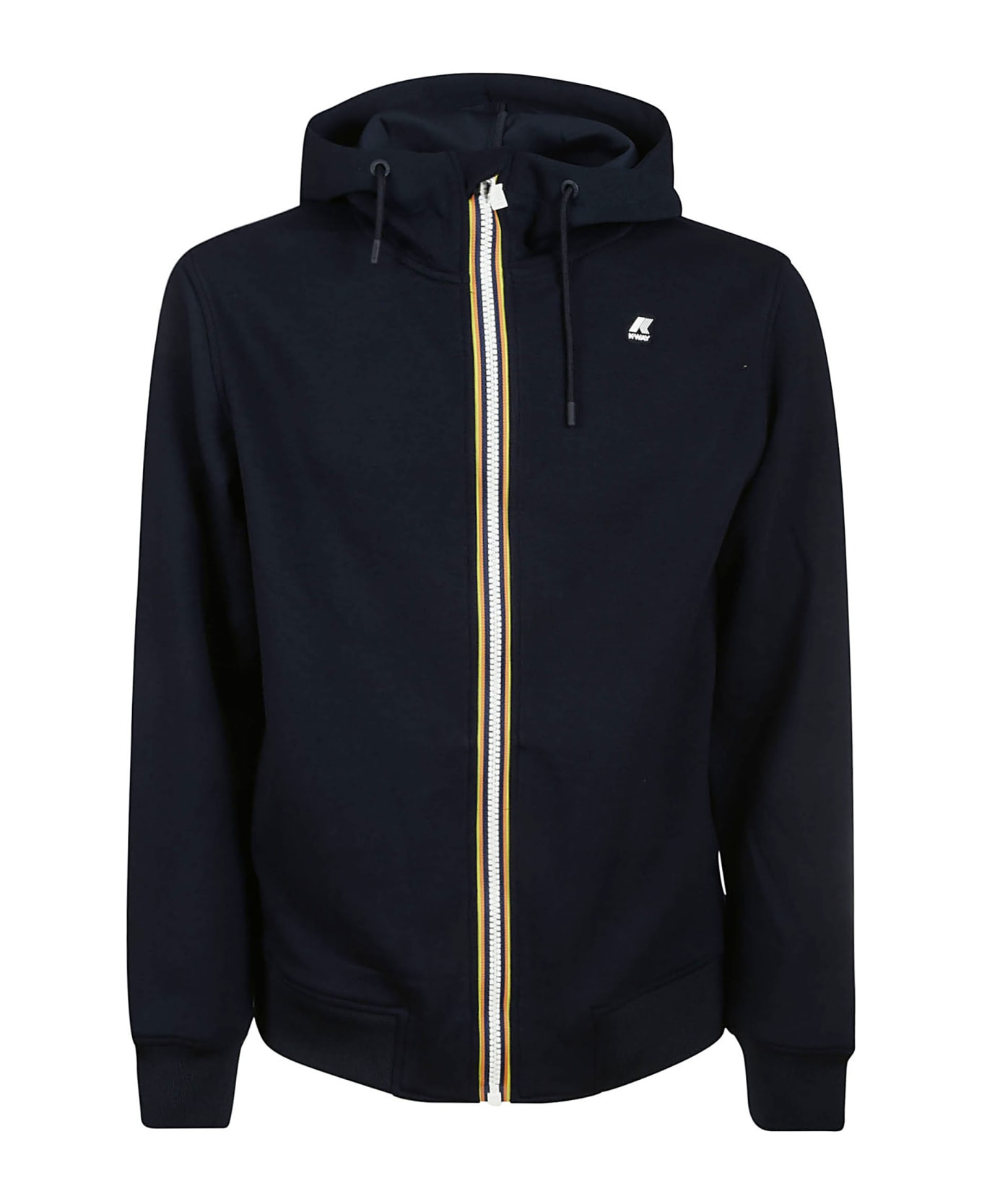 K-way Blue sweatshirt, hood with drawstring, zip closure, logo on the chest, side pockets.