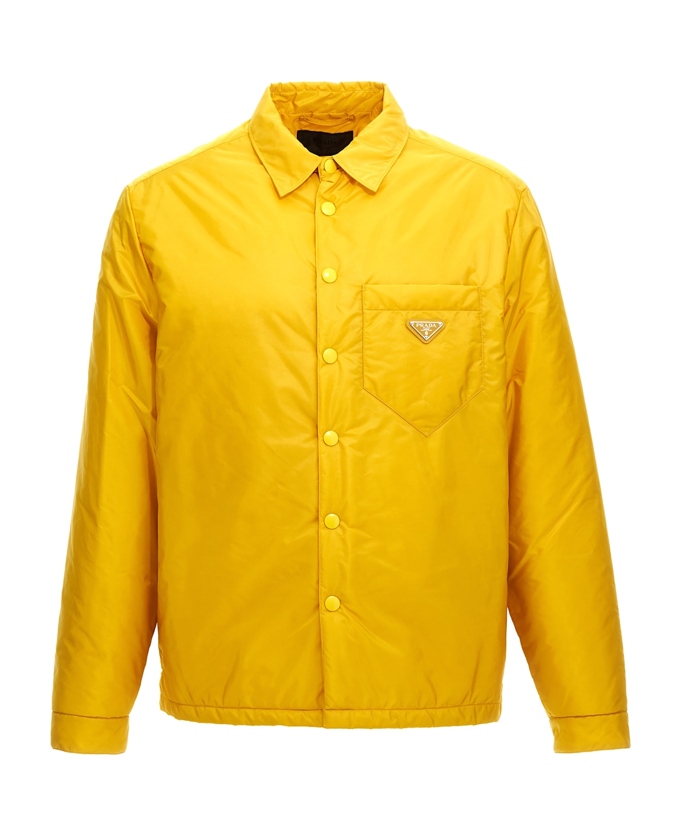 Padded Re-Nylon shirt-style jacket with button closure, front pocket with triangle enamel metal logo appliqué, long cuffed sleeves. SUSTAINABLE: This product is made with Re-Nylon, a regenerated yarn made from recycled and purified plastic collected in oceans, fishery nets and textile fibers. Composition: 100% polyamide