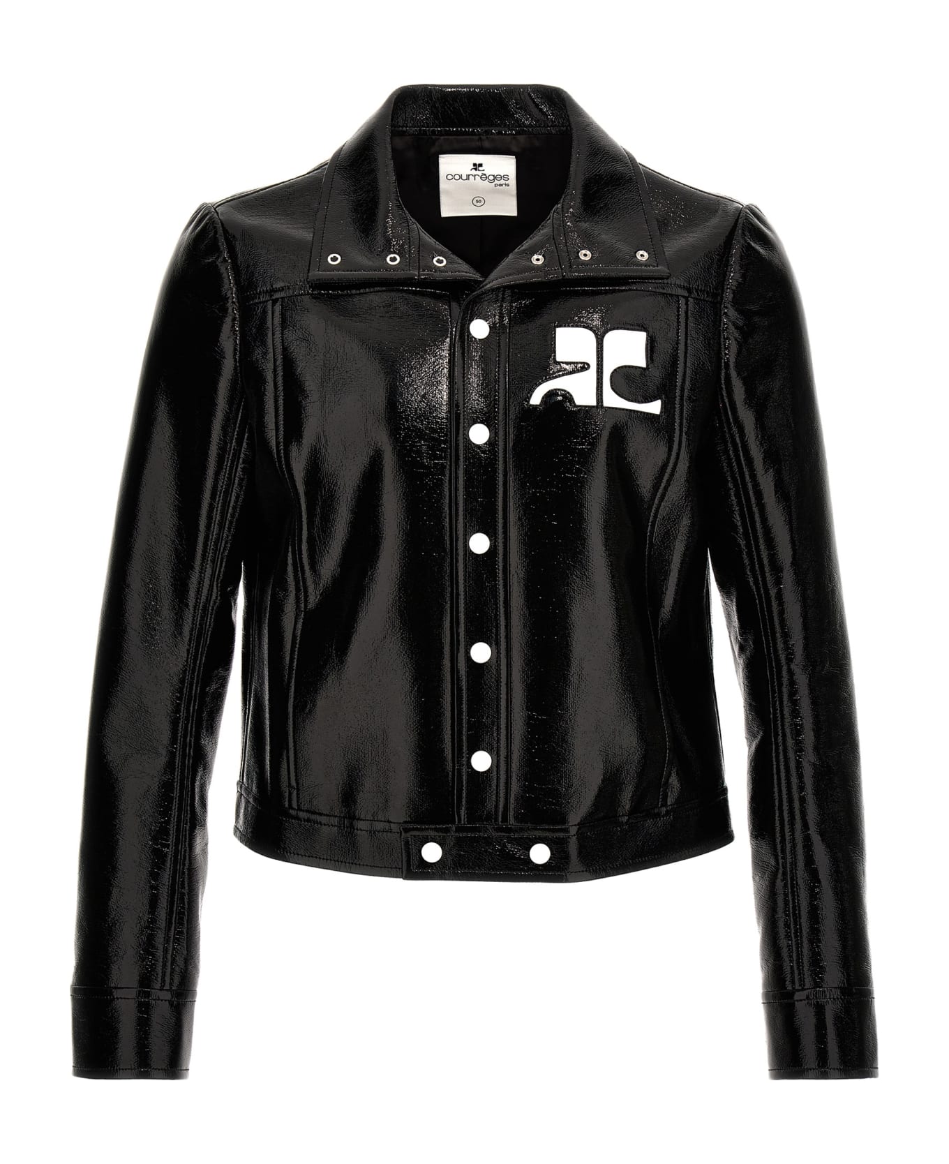 'ReEdition Vinyl' shiny vinyl jacket with button closure, front logo, shirt collar, long sleeves. Composition: 88% co, 10% pu, 2% ea