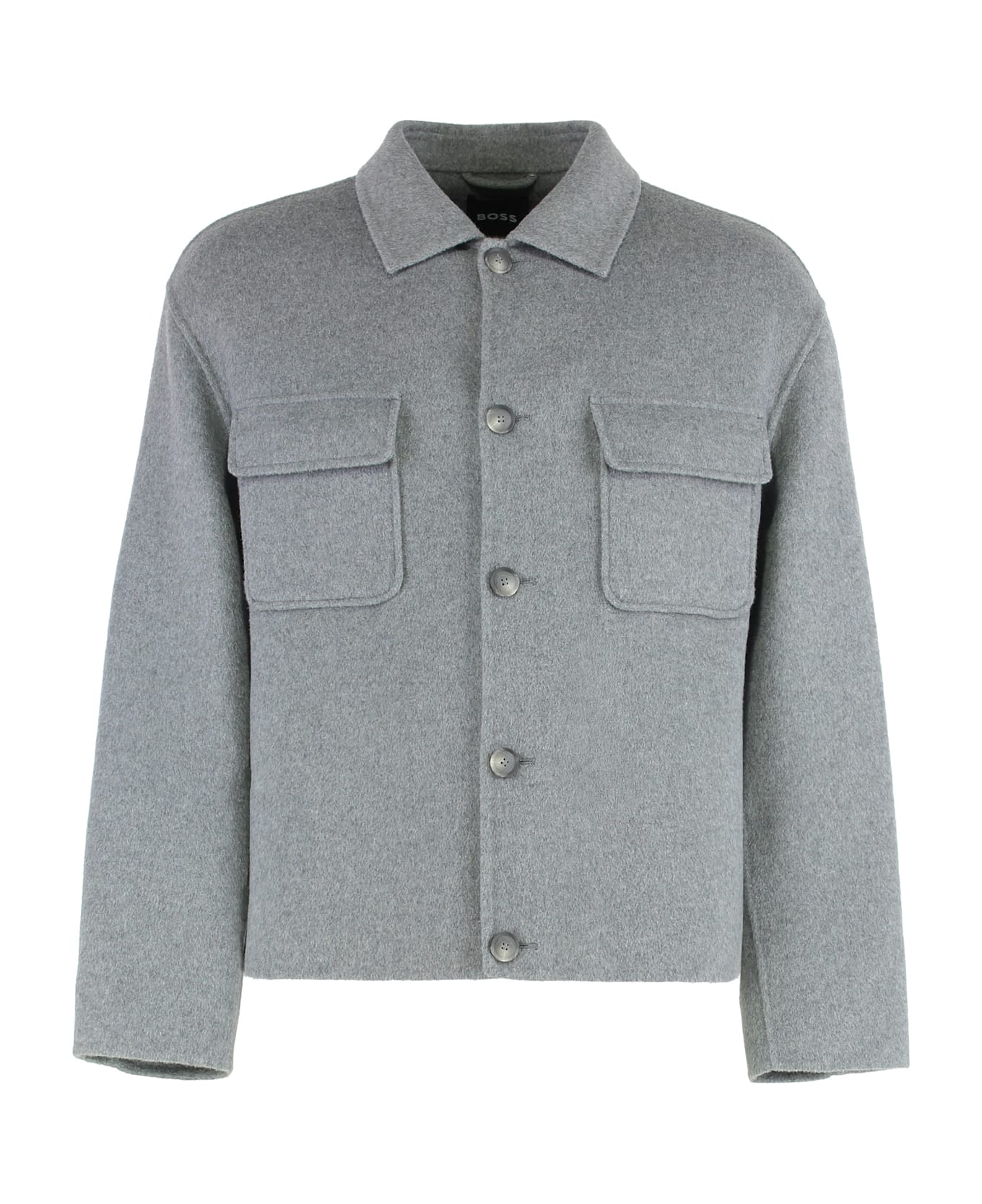 Jacket in gray tone, characterized by a modern and versatile design. it features a shirt collar and front button closure. equipped with two front pockets with flap, it offers practicality and style. the sleeves are long and the cut is regular, for optimal comfort. made from a soft material, ideal for various occasions. perfect to pair with casual or more formal looks.