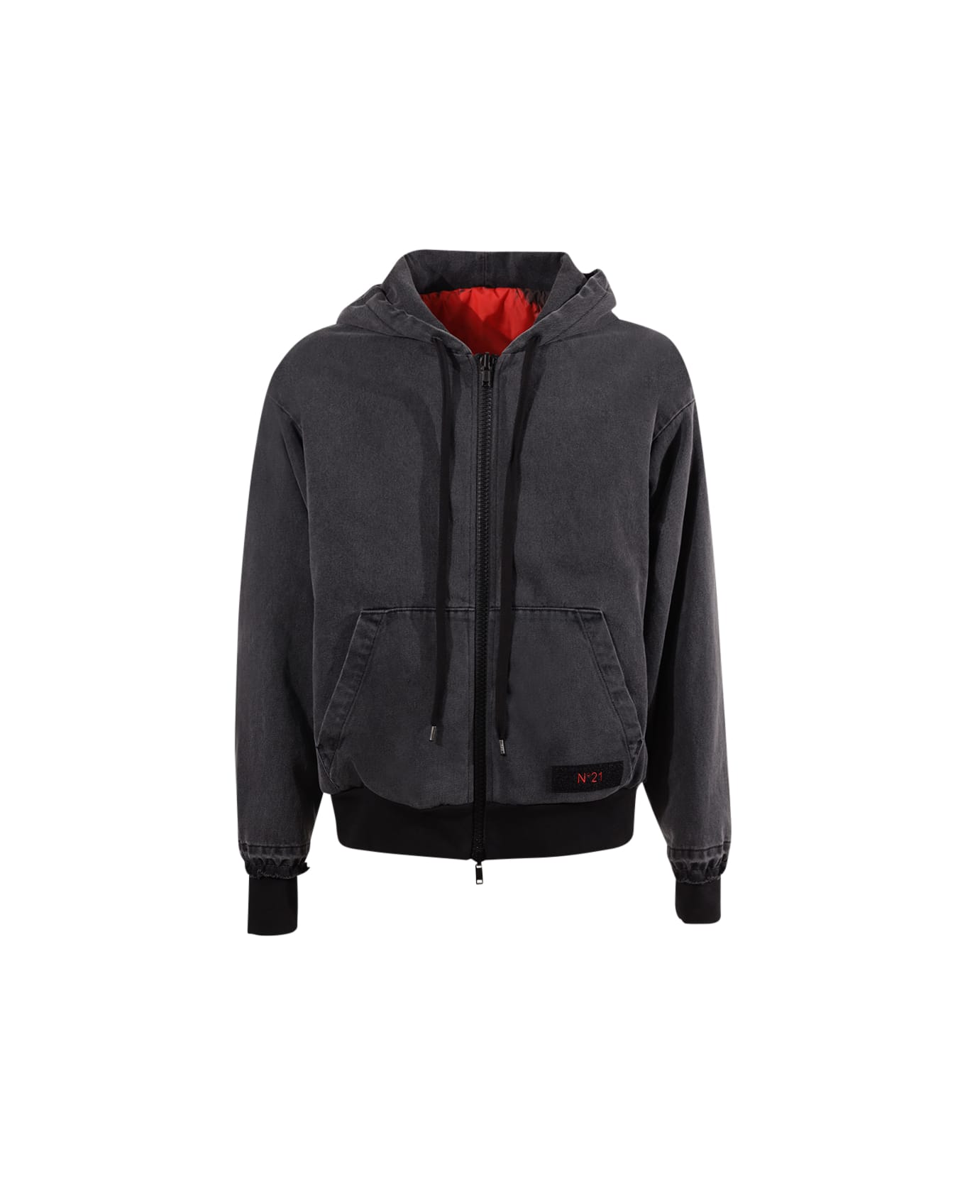 Front closure with double slider zip, fixed hood with drawstring, front pockets with velcro logo application, ribbed details. Oversized Fit. Composition: 100% Cotton; 100% Nylon. Made in Italy Composition: 100% Co