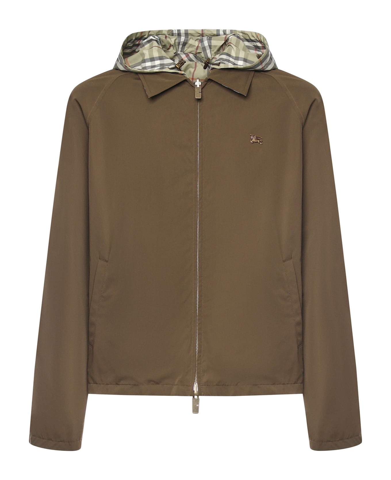 - Made of cotton canvas - Front zip closure - Drawstring hood - Side welt pockets - Metal logo on the chest - Size shown is 48 - Designer color: Marsh Green
