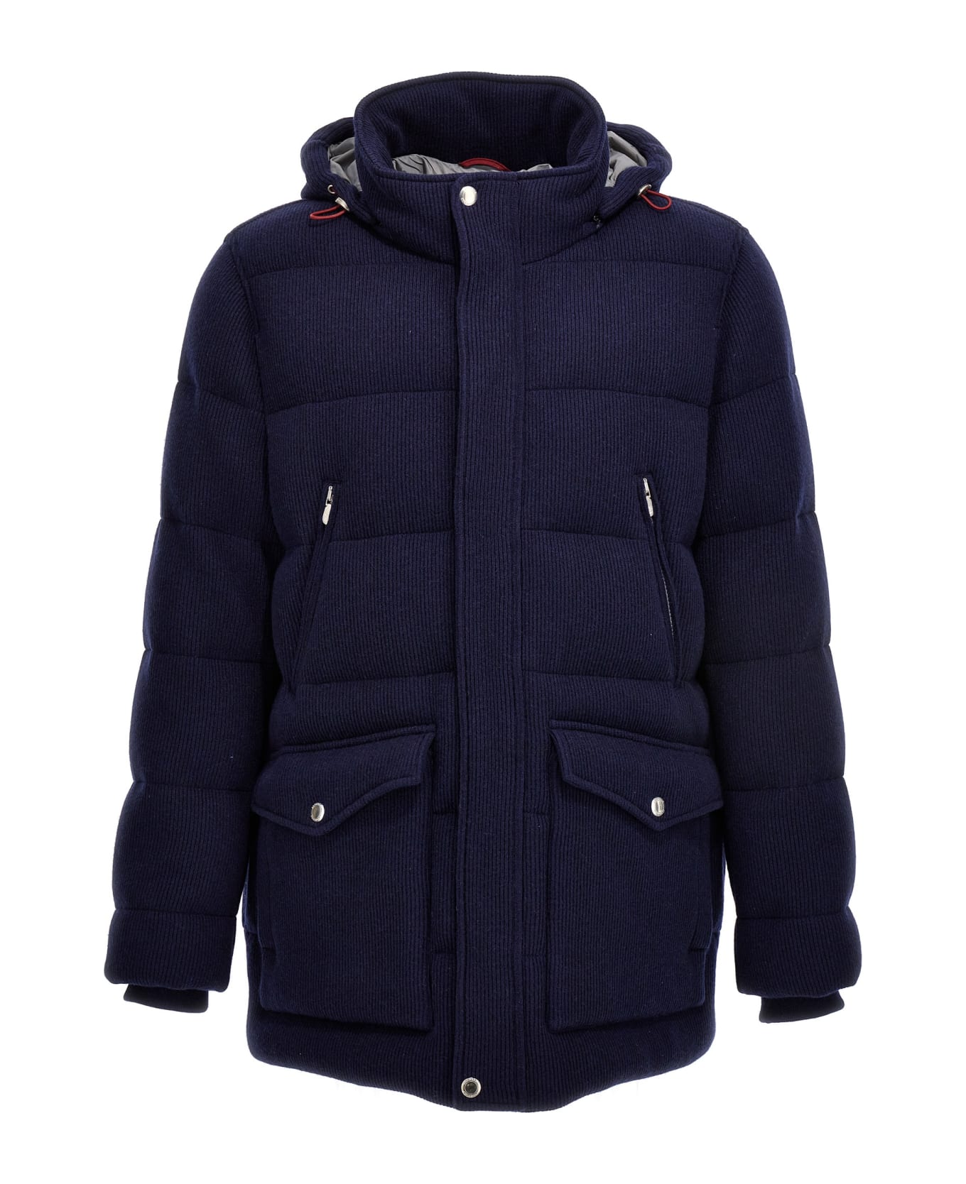 Ribbed cashmere parka with goose down padding, removable hood, concealed zip closure, pockets and long knitted cuffed sleeves. Composition: 100% cachemire