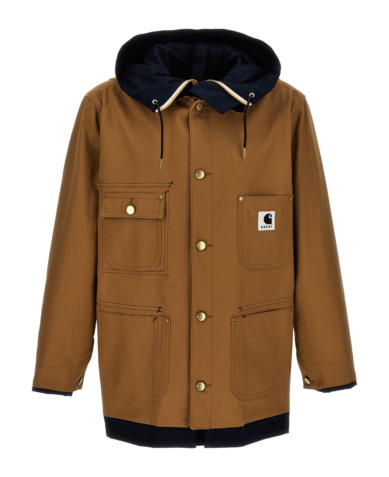 Sacai x Carhartt WIP reversible canvas jacket with zip, button and velcro closure, adjustable drawstring hood, pockets, front logo patch, long sleeves. Composition: 100% cotton