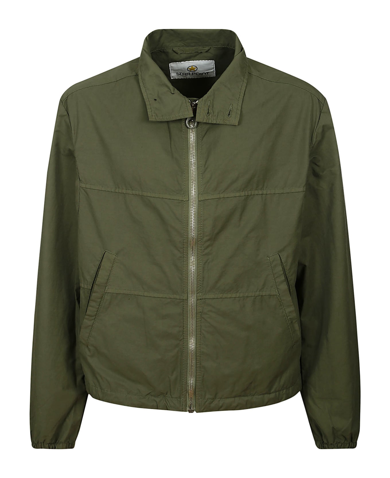 Star Point Green cotton jacket, zip closure, collar with buttons, side pockets, gathered cuffs, logo detail. Composition: 100% Cotton