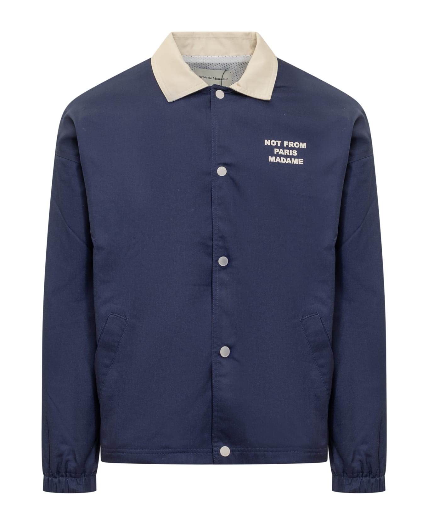 Jacket with classic collar. Buttons closure. Elastic on the cuffs. Print on the chest and back.