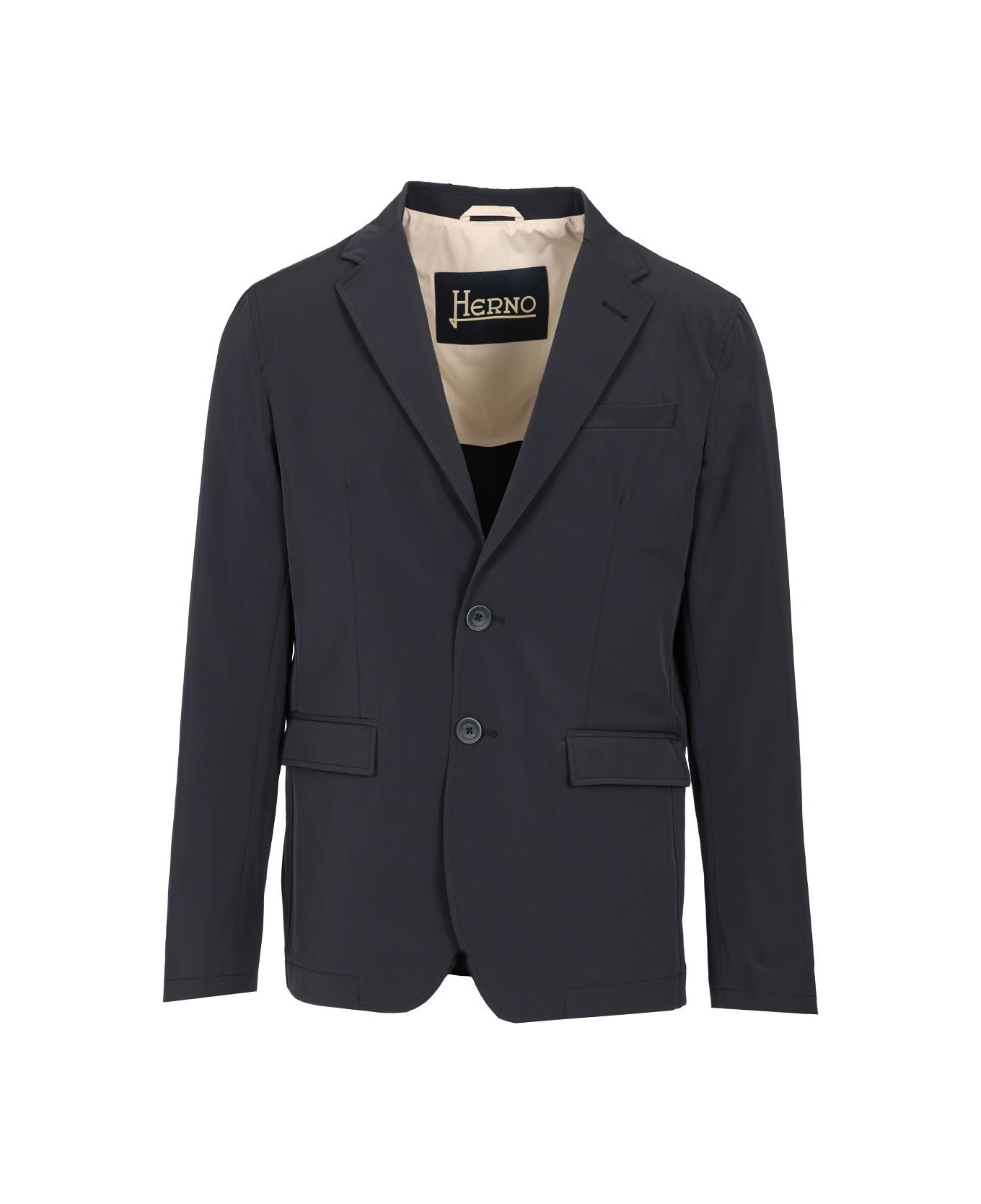 Single-breasted blazer in super high density stretch matt nylon with transparent lamination. Regular fit Peak lapels Buttoned cuffs Welt pocket on the chest Flap pockets on the sides Unlined back vents Composition: 100% POLIESTERE