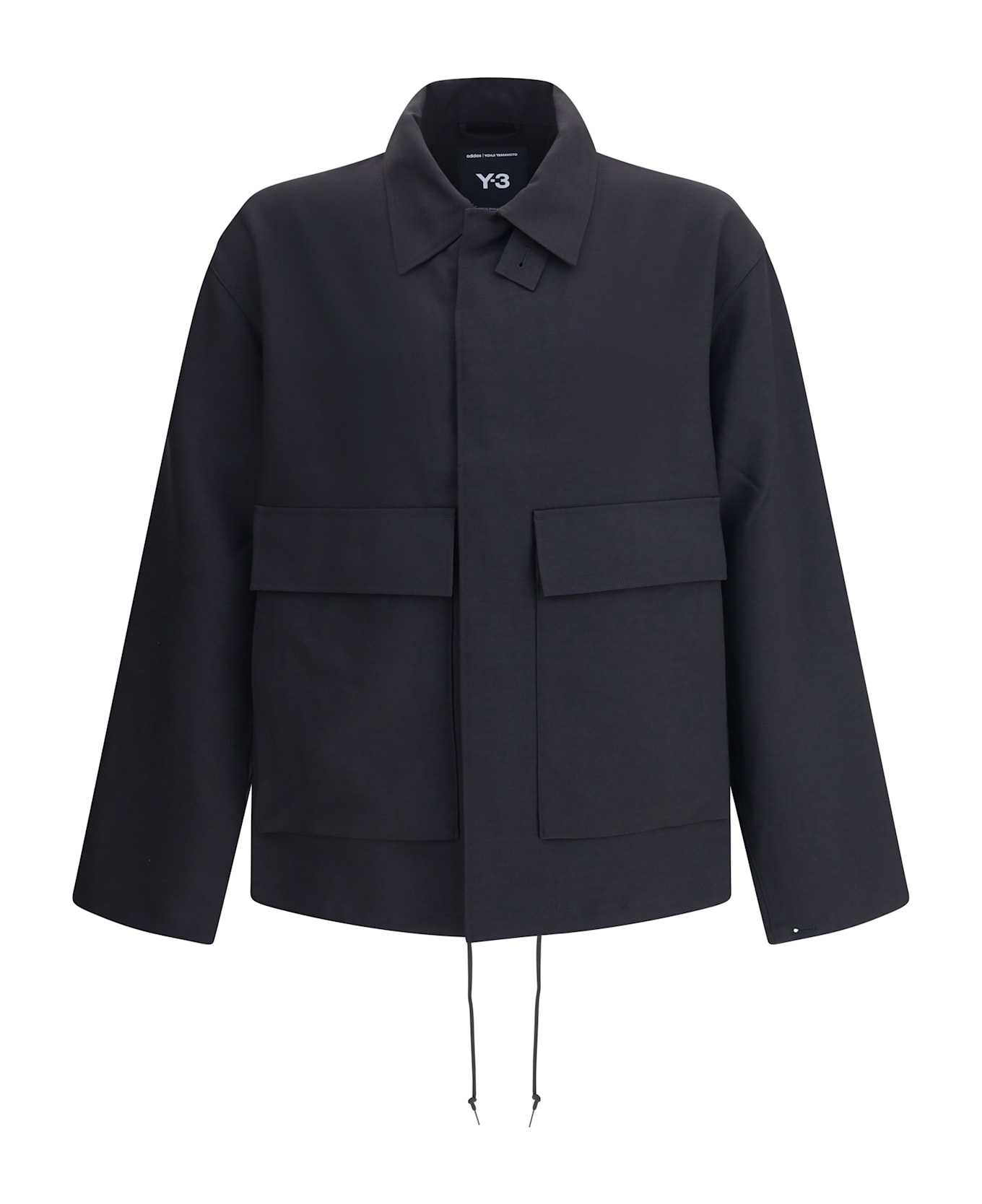 The sport uniform coach jacket by y-3 features a loose fit and functional style. featuring a front closure with horn buttons, it is lined in cotton for comfort and breathability. cargo pockets with flaps and an inside phone pocket offer practicality, making this garment ideal for a casual, technical look.