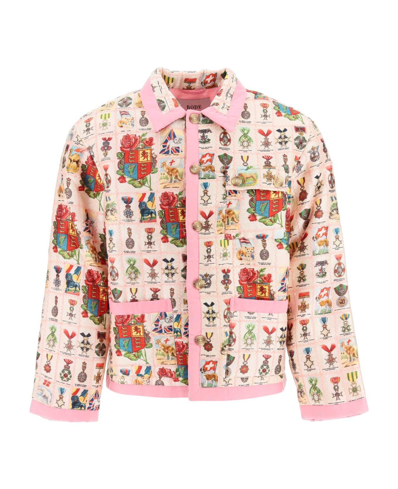 Bode printed silk faille jacket with contrast trims and top stitching details. Straight regular cut provided with pointed collar and button fastening. Finished with side patch pockets and a chest button-through flap pocket. The model is 187 cm tall and wears a size M/L.