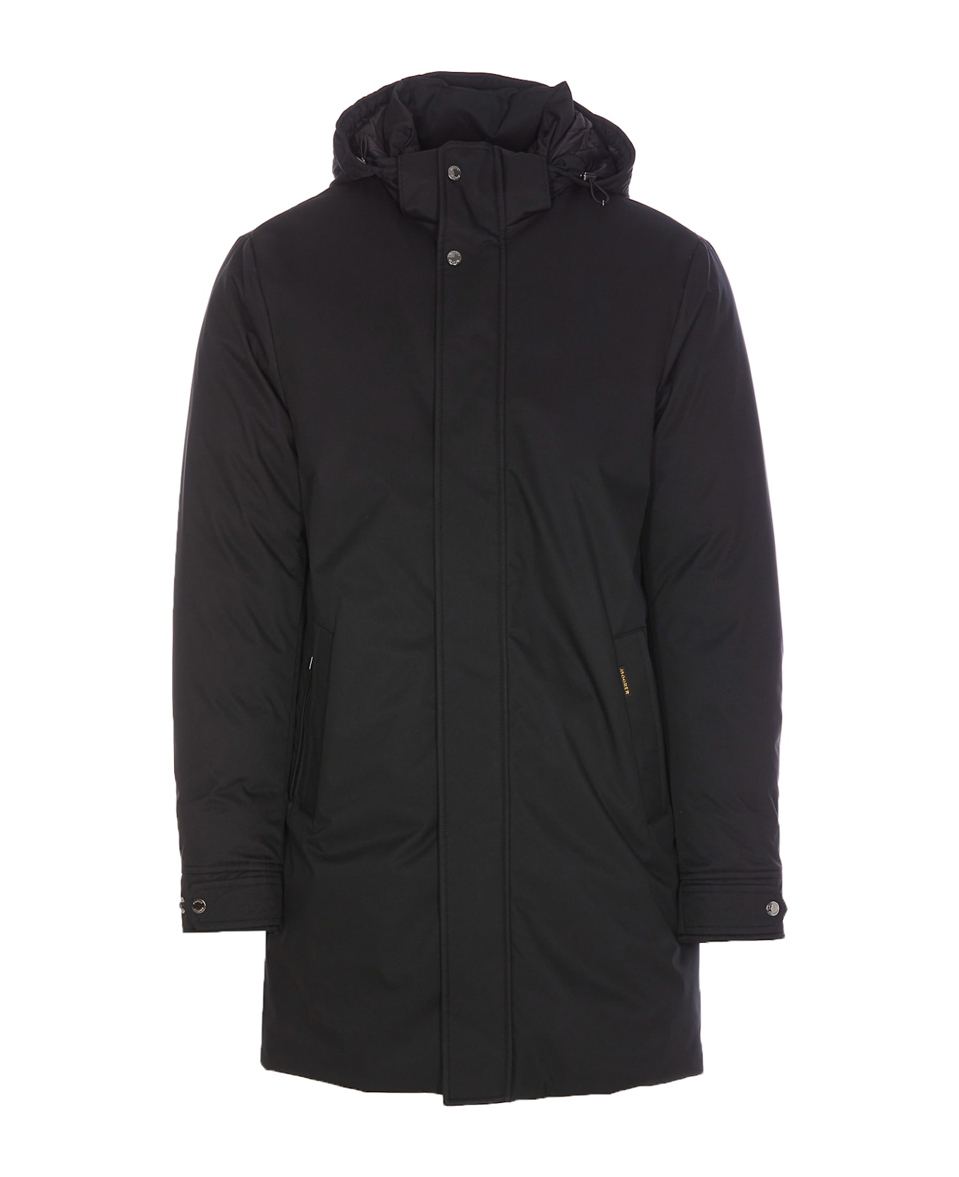 Moorer black Vermont down jacket with frontal zip and buttons closure, hood detail, lateral double pockets, button on cuffs, padded Composition: 100% Polyamide, 100% Polyester