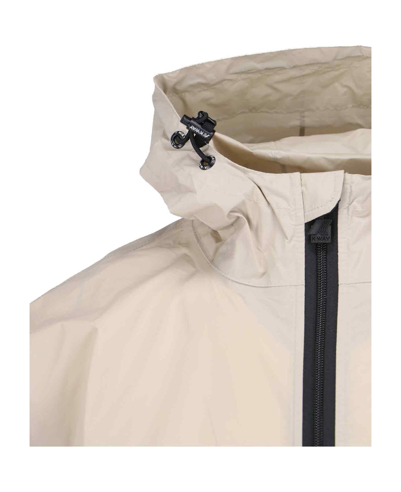 Comme des Garcons Play X K-way logo hooded jacket, in beige nylon, drawstring hood, zip fastening, front and back logo patch, one maxi front zip pocket, two side zip pockets, elasticated cuffs, elasticated hem.