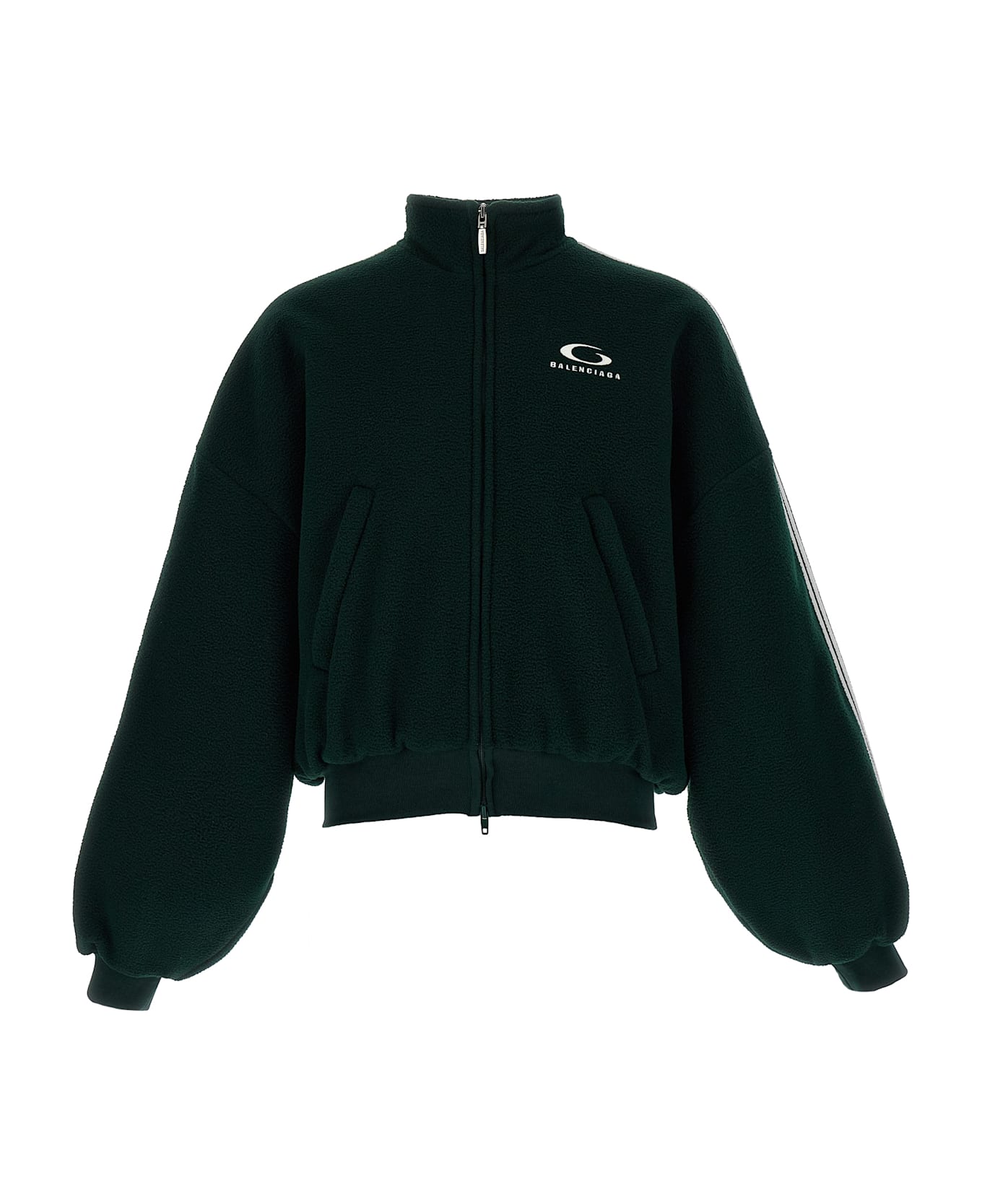 'Zip Round Loop Sports Icon' crop jacket in polyester fleece with logo embroidery and front zip closure, high neck, extra wide round long sleeves with loop sports icon pattern and elastic cuffs, pockets, elastic on the hem. SUSTAINABLE: Product made from recycled polyester.