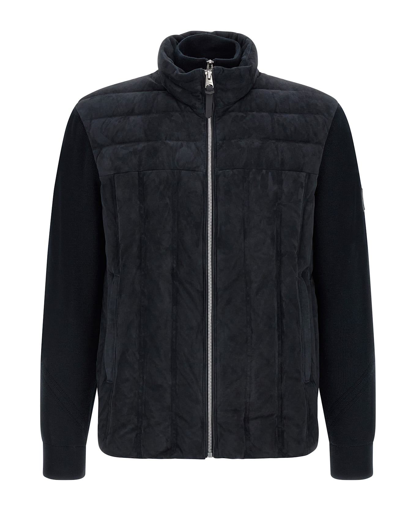 Landen' knitted virgin wool jacket with quilted and padded suede front, standing collar, double layer wool front insert, zip closure, pockets, long cuffed sleeves and a tone-on-tone logo patch appliqué. Composition: 100% virgin wool