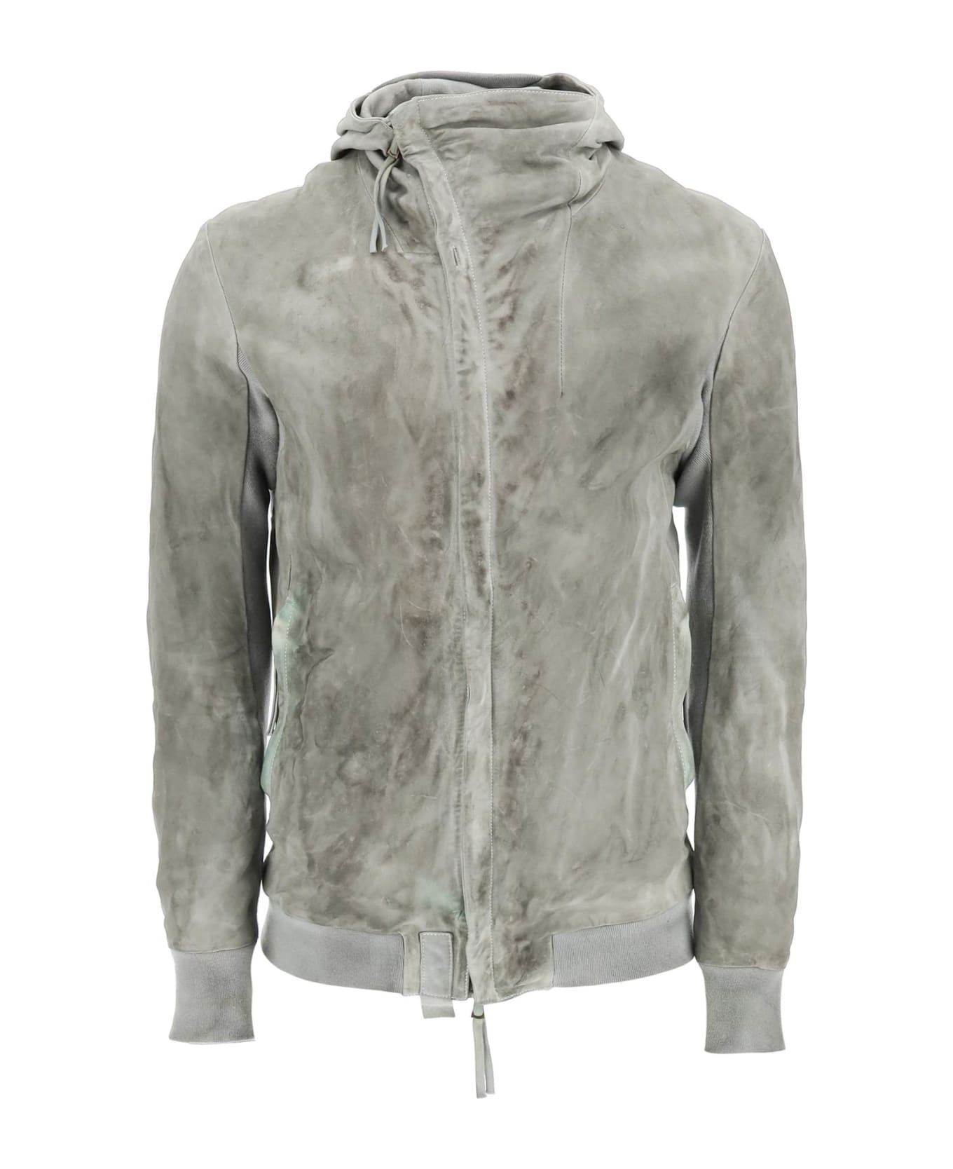 Slim-fit jacket handcrafted in garment-dyed kangaroo leather by Boris Bidjan Saberi. It features an asymmetric double-slider zip closure, an adjustable hood, side zip pockets and an internal pocket. Finished with ribbing on cuffs, hem, hood and undersleeves, it is lined in cotton blend and lightly padded with PrimaLoft fibers. Internal shoulder straps, thumbhole cuffs, signature drawstring detail on the upper back. The model is 187 cm tall and wears a size M.