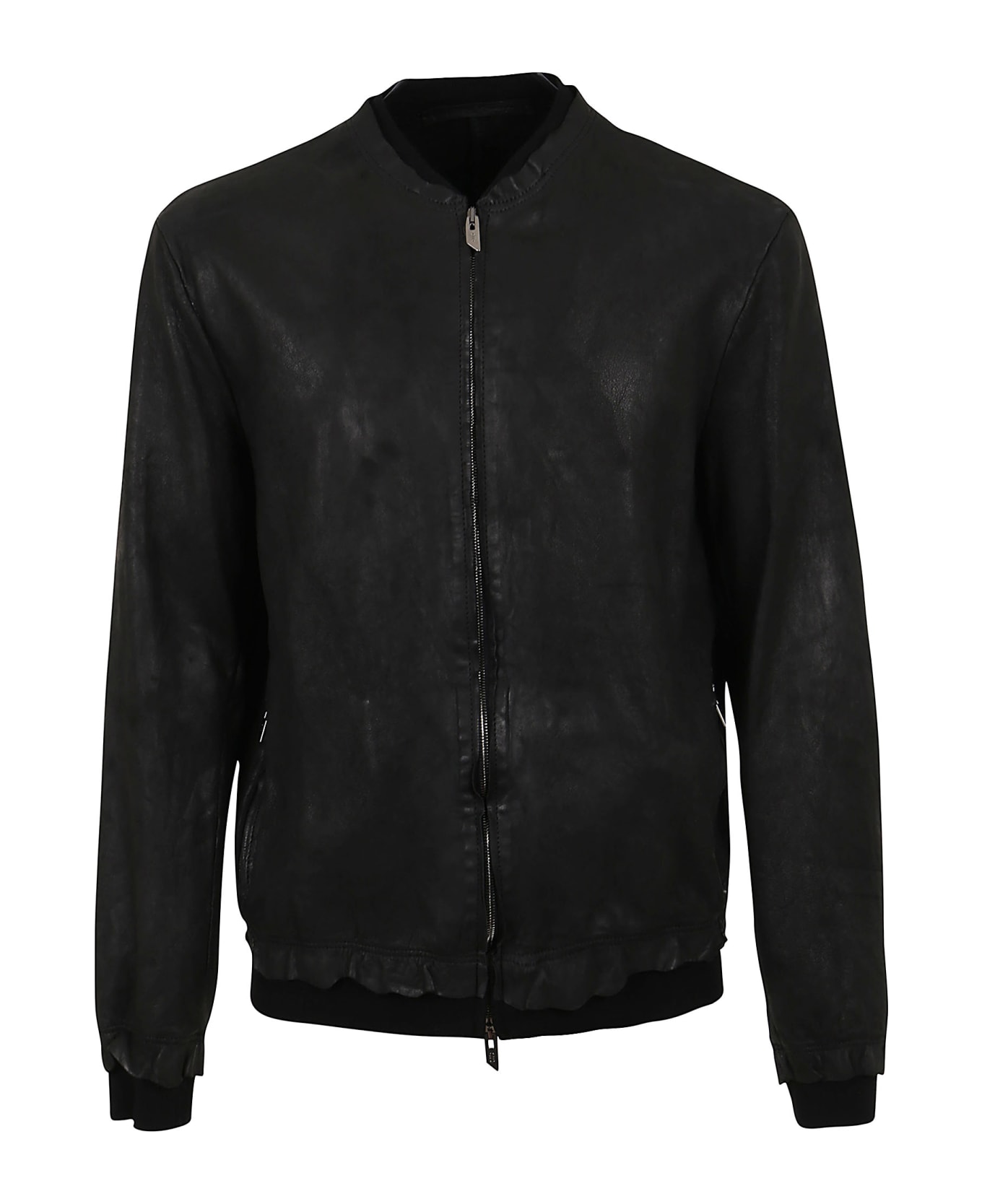 Leather jacket BY SALVATORE SANTORO. Front closure with double slider zip; two side pockets with zip. Regular fit design. Detail elastic ribbed profiles.