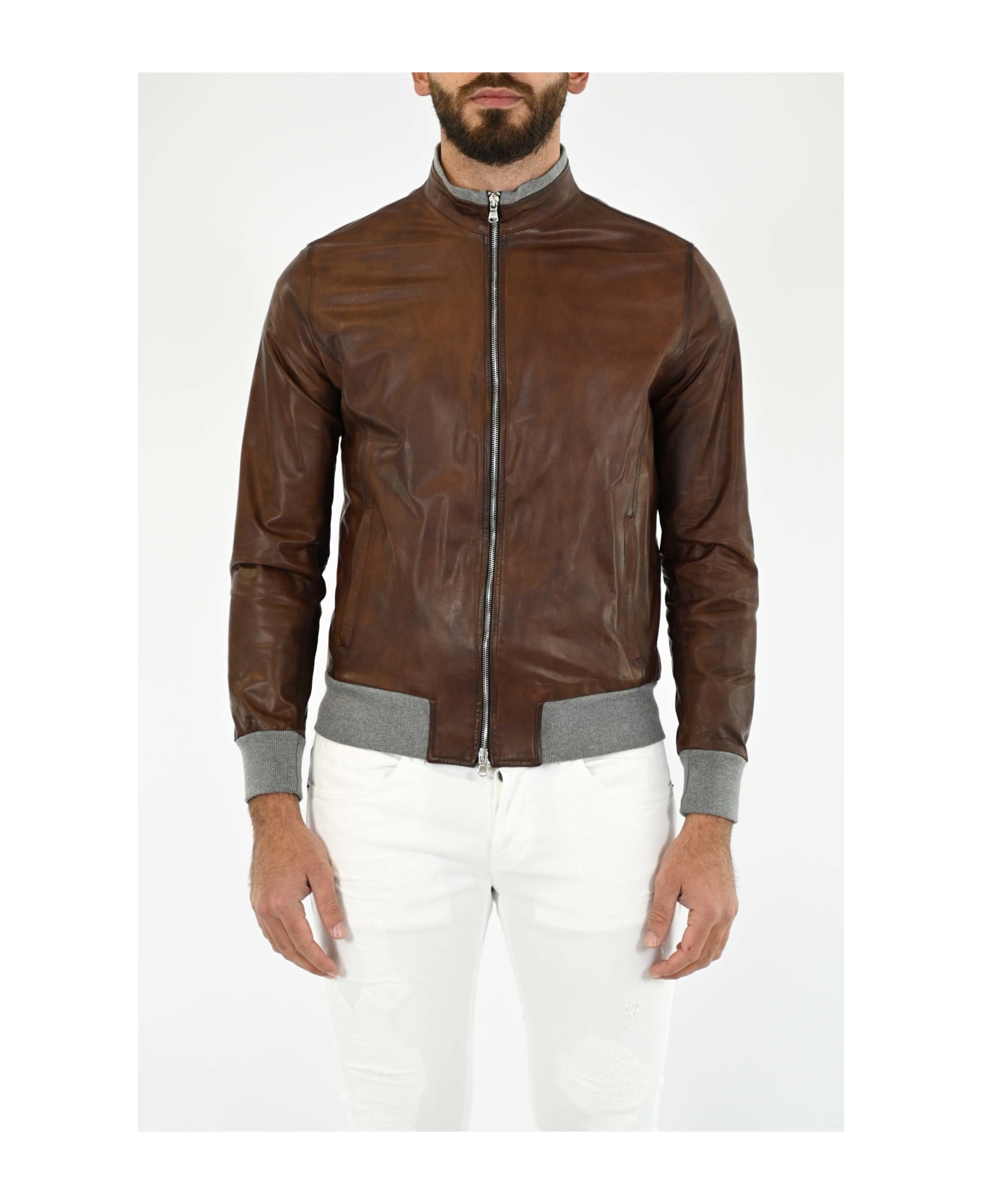 brown, leather, high collar, front closure with zip, two side pockets with zip and long sleeves. origin: italy composition leather 100% washing instructions wash in a specialized centre