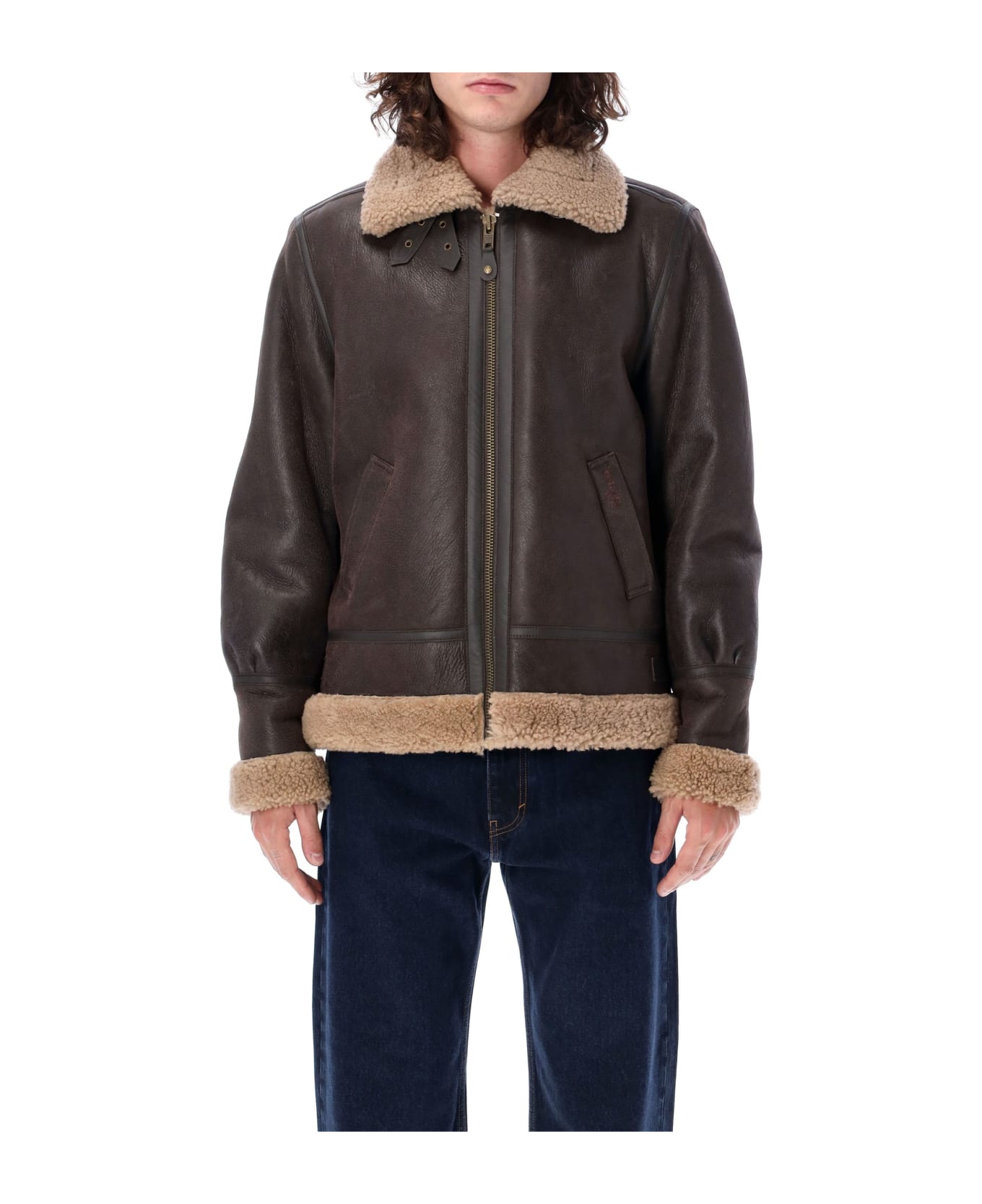 Shearling G1 Jacket By Schott Nyc. Featuring: Slightly Lighter Sheepskin Jacket Slimmer Collar Zip Front Cosure Two Lower Slash Pockets Leather Welted Seams Model Is 1,90 M Tall And He Is Wearing Size L