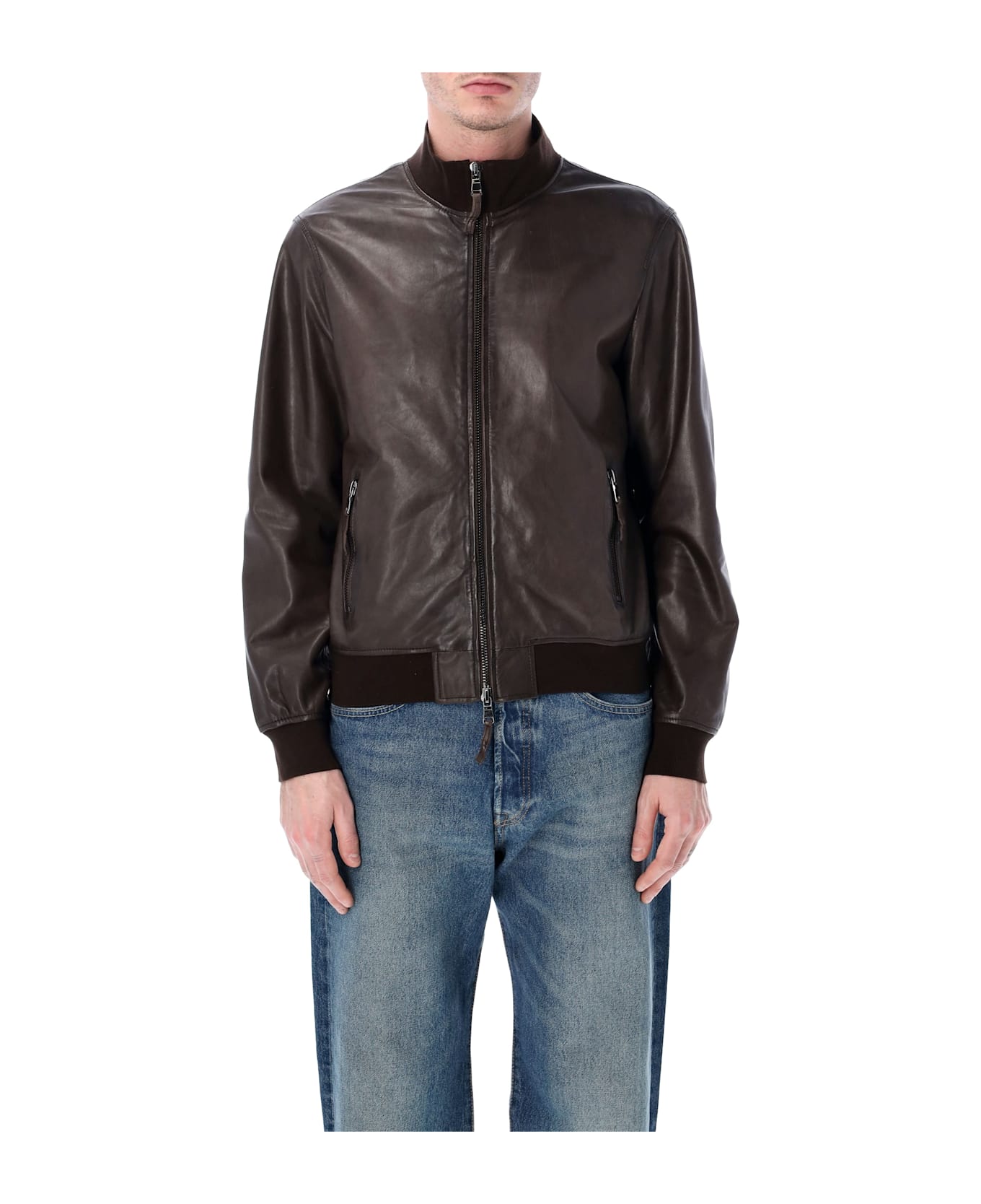 The Sword 6. 6. 44 Black Leather Bomber Combines Urban Style With Refined Comfort. Featuring A Ribbed Collar, Elastic Cuffs, And Front Zip Closure, It Offers A Sleek, Practical Fit. Zip Side Pockets Complete The Minimalist Design, Making It Perfect For Modern, Casual Looks. Soft Leather Front Zip Closure Ribbed Collar, Cuffs And Hem Side Zip Pockets Fully Lined Regular Fit Andrea Is 1,90 M And Wears Size 50