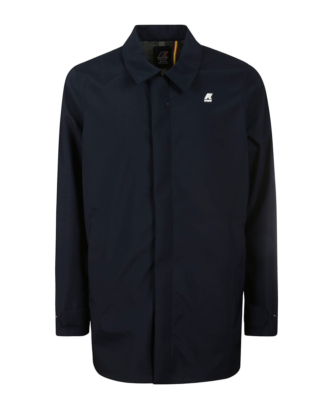 K-way Raincoat in blue technical fabric, adjustable cuffs, logo on the chest, jersey lining, heat-taped seams, zip and flap closure, 2 zip pockets. Composition: 88% Polyester, 12% Polyurethane
