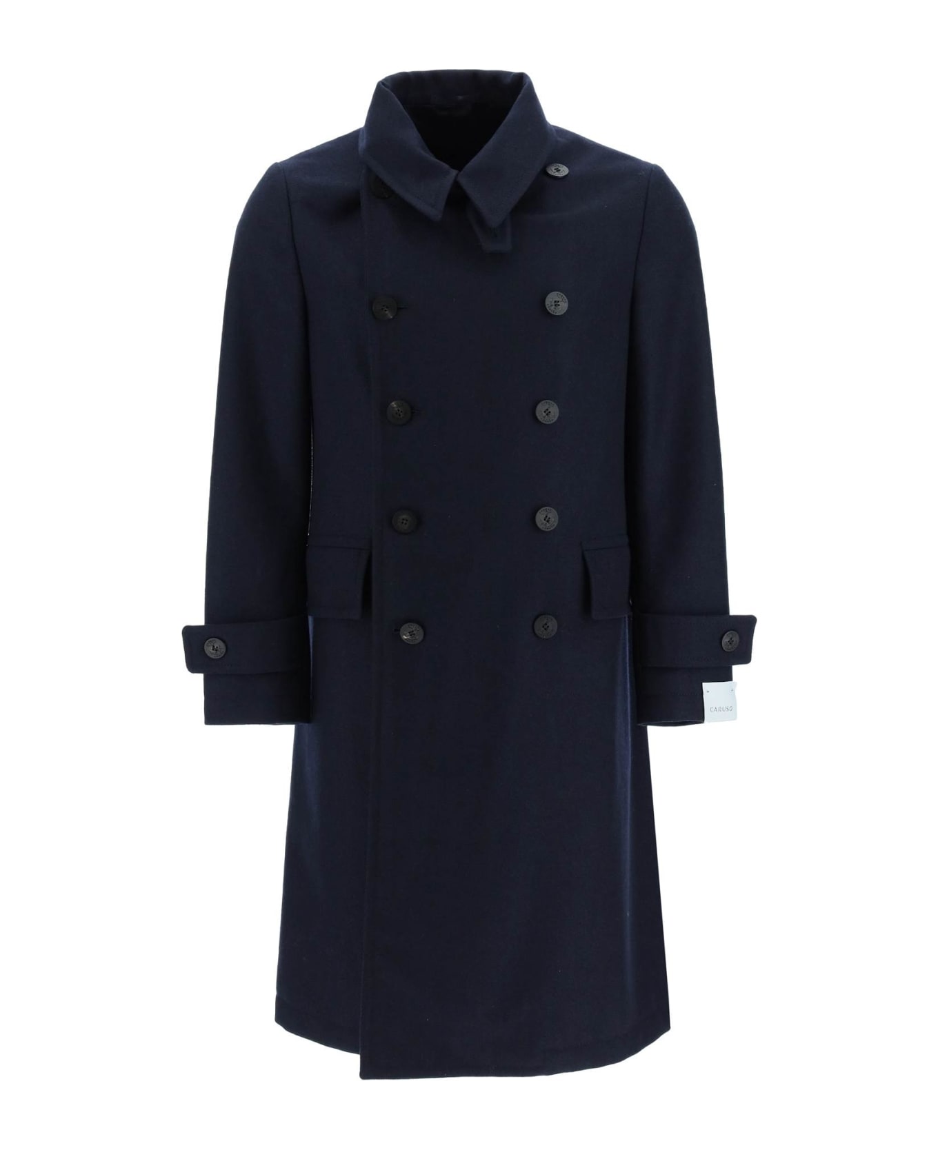 Caruso coat crafted in wool and cashmere blend fabric with six-button double-breasted closure, wide lapel collar with chin strap, front welt pockets with flap and adjustable buttoned strap at wrist. Fabric logo label applied on the left wrist. Regular fit and straight cut with middle vent on the back. Cotton lining with a zippered pocket. The model is 187 cm tall and wears size IT 48.