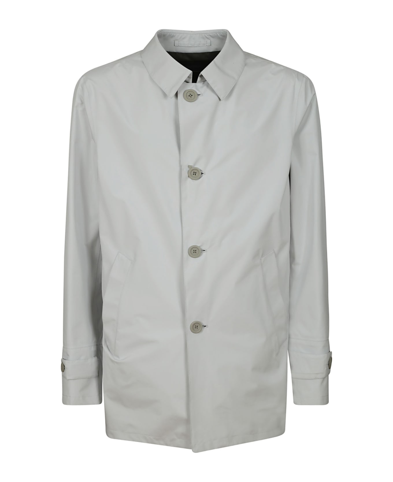 Herno Ice raincoat, with button closure and central vent in the back. Windproof cuffs, made with a GORE-TEX membrane that offers waterproof protection, as well as breathable and windproof properties. Equipped with internal pockets and supplied with a resealable rain hat.