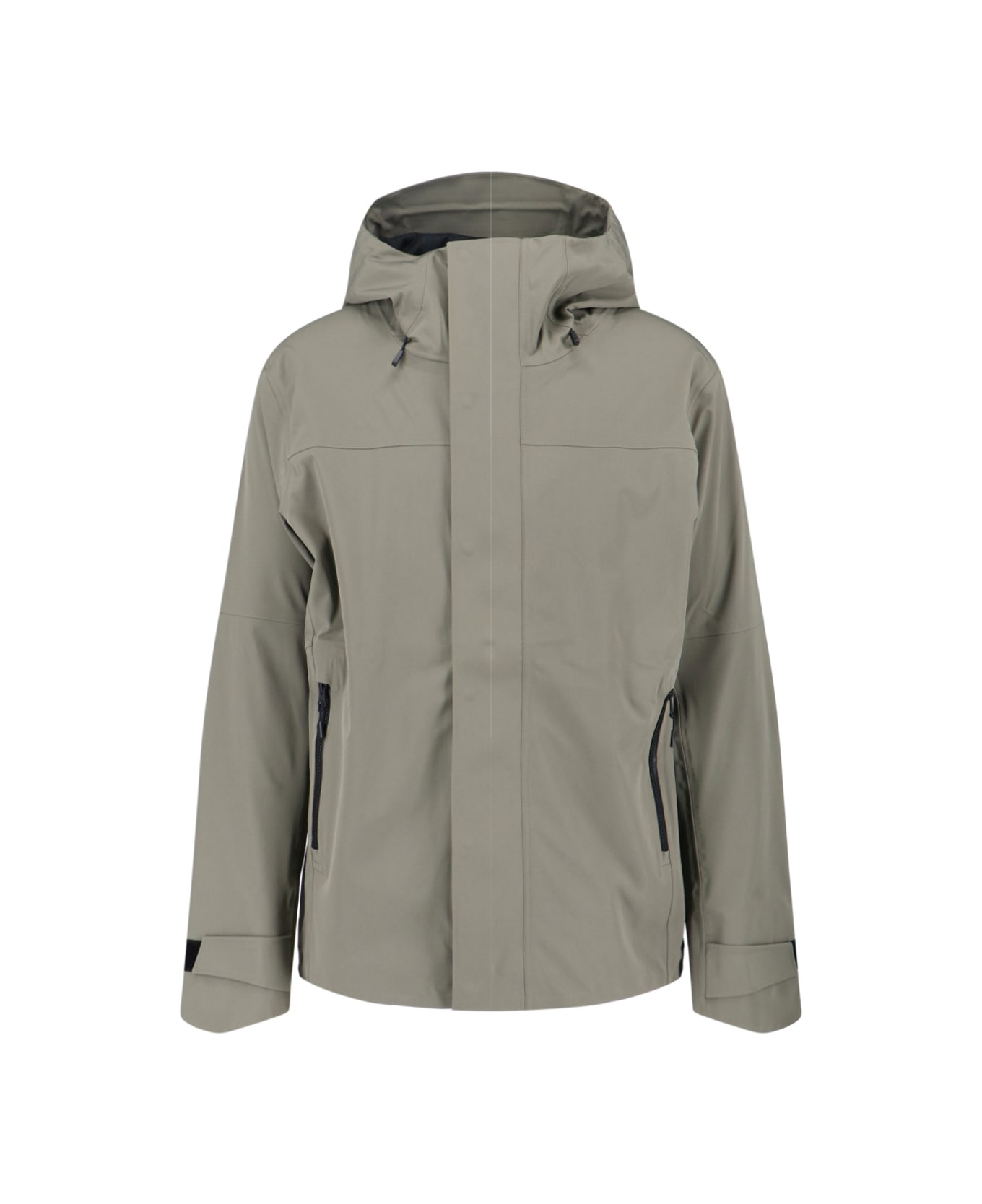 Canada Goose Rupert jacket in green fabric with hood, drawstring, high neck, button and zip closure, two side zip pockets, side logo patch, inner zip pocket, straight hem. Composition: 87% Polyamide, 13% Elastane