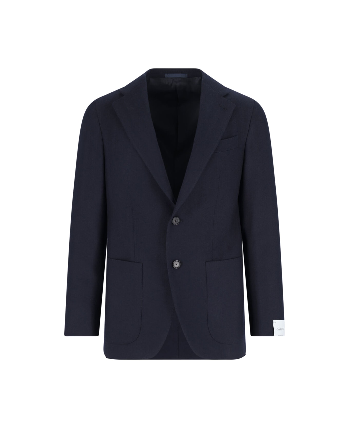 Caruso Aida single-breasted blazer made of blue wool, navy shade, classic lapels, two-button closure, breast pocket, two flat side pockets, logo label on sleeve, button cuffs, straight hem.