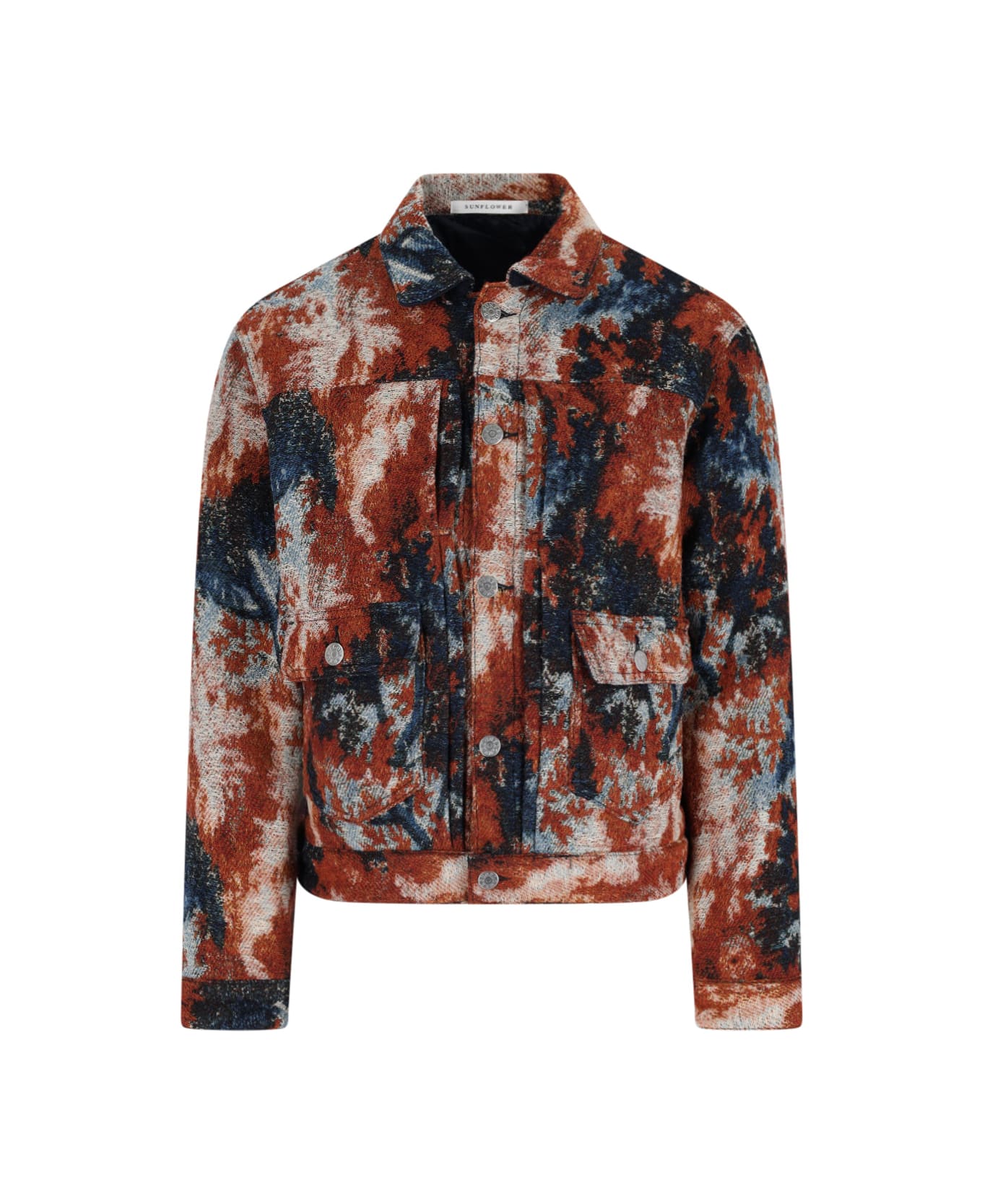 Sunflower 'Type 2' jacket in multicolour fabric with Camo print pattern, classic collar, button closure, two front flat pockets, two side button flap pockets, button cuffs, straight hem.