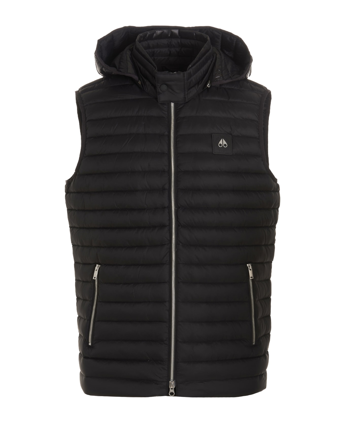 'Air Down' 100g nylon vest with feather padding, zip closure, removable hood, pockets, front logo patch. : This product is made from recycled materials.