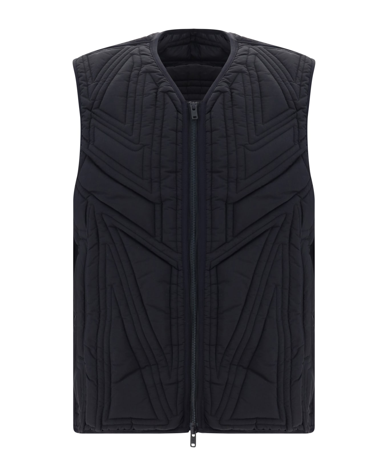 Down vest by y-3, v-neck front, front zipper closure, padded and quilted design, monochrome pattern, two slit pockets patch on front, regular fit. Composition: 100% % Nylon