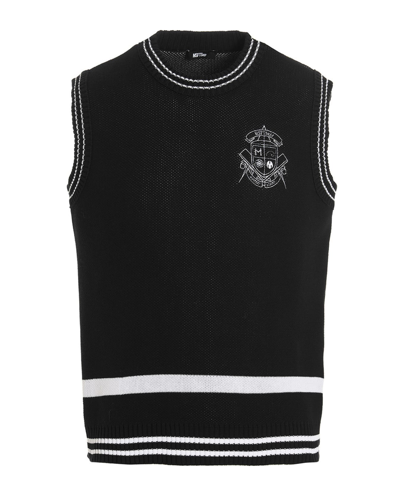 Cotton knit vest with a jacquard logo back, front logo embroidery, a crew neck, and contrasting piping. : Product made in organic cotton