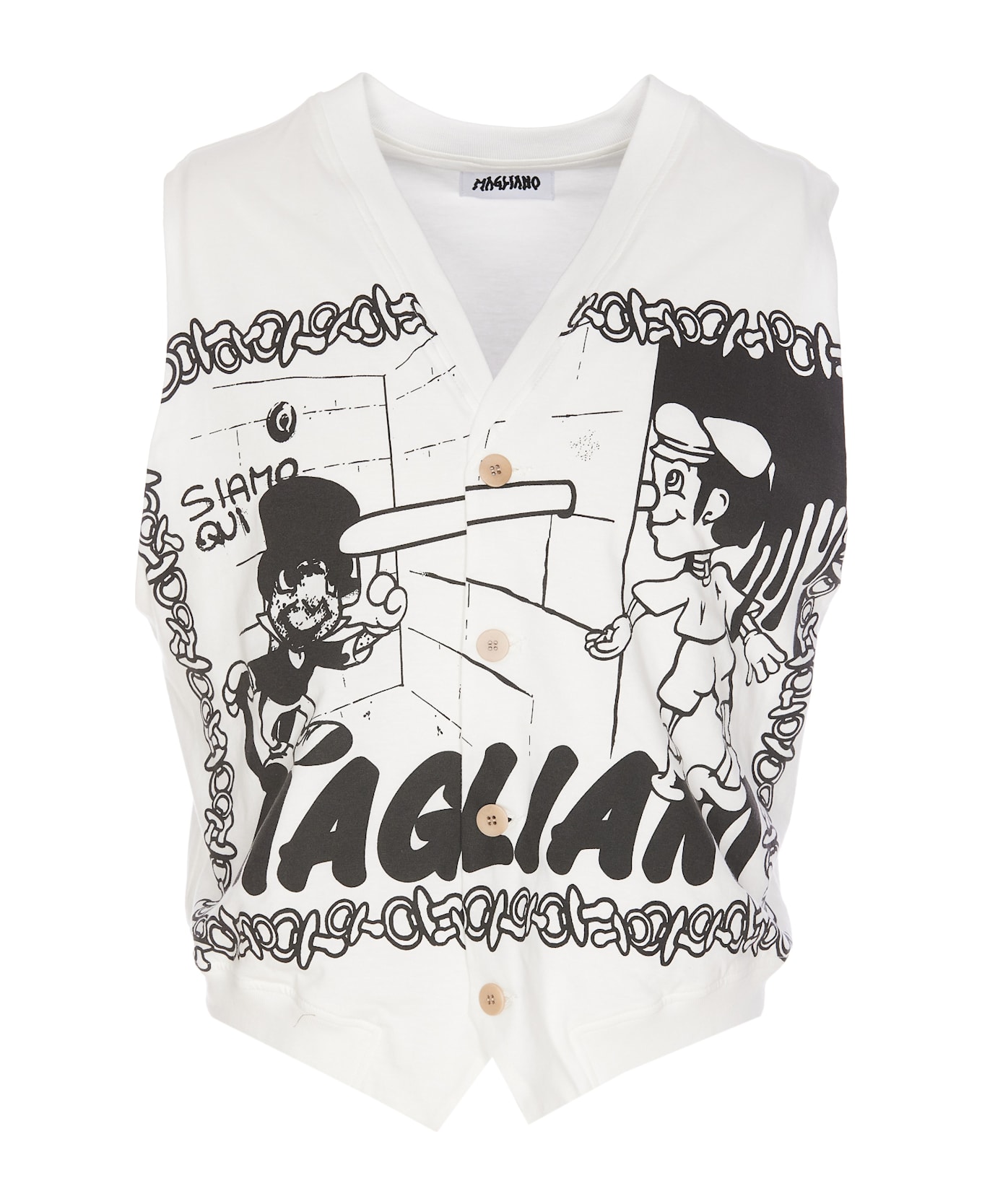 Magliano white Mascotte vest with buttons closure, v-neck, sleeveless, print on the front